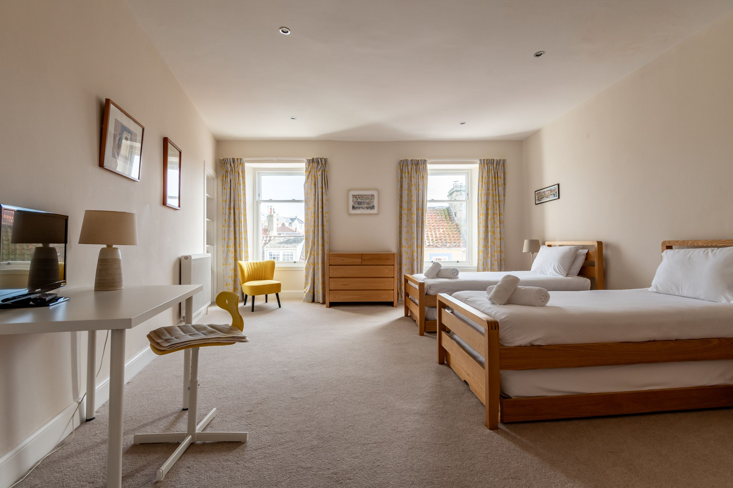 El apartamento en St Monans posee 2 dormitorio(s) y capacidad para 6 personas. Alojamiento de 130 m². Dispone de jardín, mobiliario jardín, lavadora, plancha, acceso internet (wifi), secador, calefacción central, Televisión, Dvd.La cocina, está equipada con nevera, microondas, horno, congelador, lavavajillas, vajilla/cubertería, utensilios/cocina, tostadora, hervidor de agua, batería de cocina, platos y cuencos.