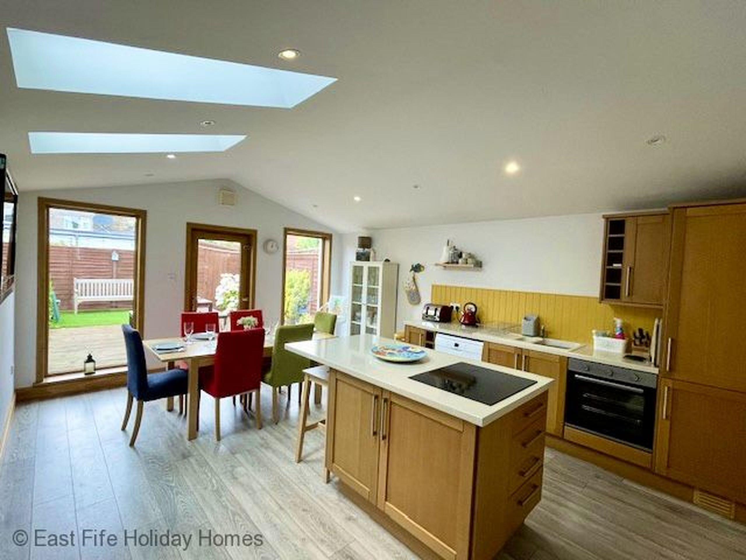 La casa en Elie posee 4 dormitorio(s) y capacidad para 8 personas. Alojamiento de 109 m². Dispone de jardín, mobiliario jardín, parcela vallada, lavadora, barbacoa, plancha, acceso internet (wifi), secador, calefacción central, Televisión.La cocina, está equipada con nevera, microondas, horno, congelador, lavavajillas, vajilla/cubertería, utensilios/cocina, tostadora y hervidor de agua.