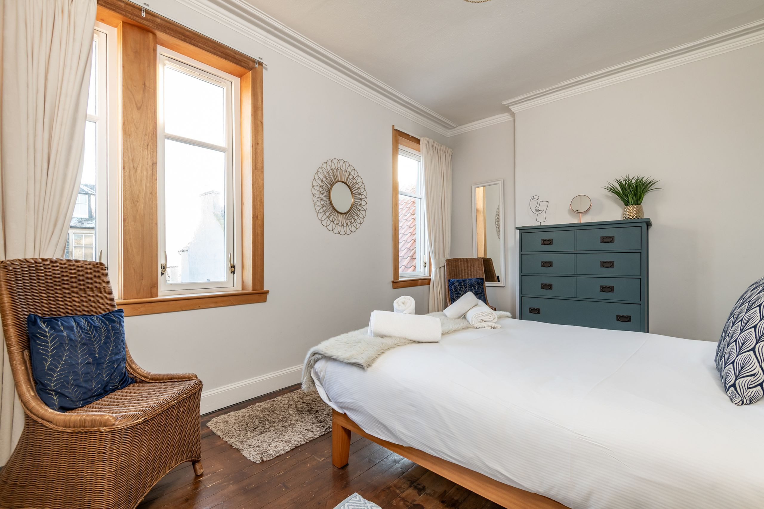 La casa en Elie posee 4 dormitorio(s) y capacidad para 8 personas. Alojamiento de 109 m². Dispone de jardín, mobiliario jardín, parcela vallada, lavadora, barbacoa, plancha, acceso internet (wifi), secador, calefacción central, Televisión.La cocina, está equipada con nevera, microondas, horno, congelador, lavavajillas, vajilla/cubertería, utensilios/cocina, tostadora, hervidor de agua, batería de cocina, platos y cuencos.