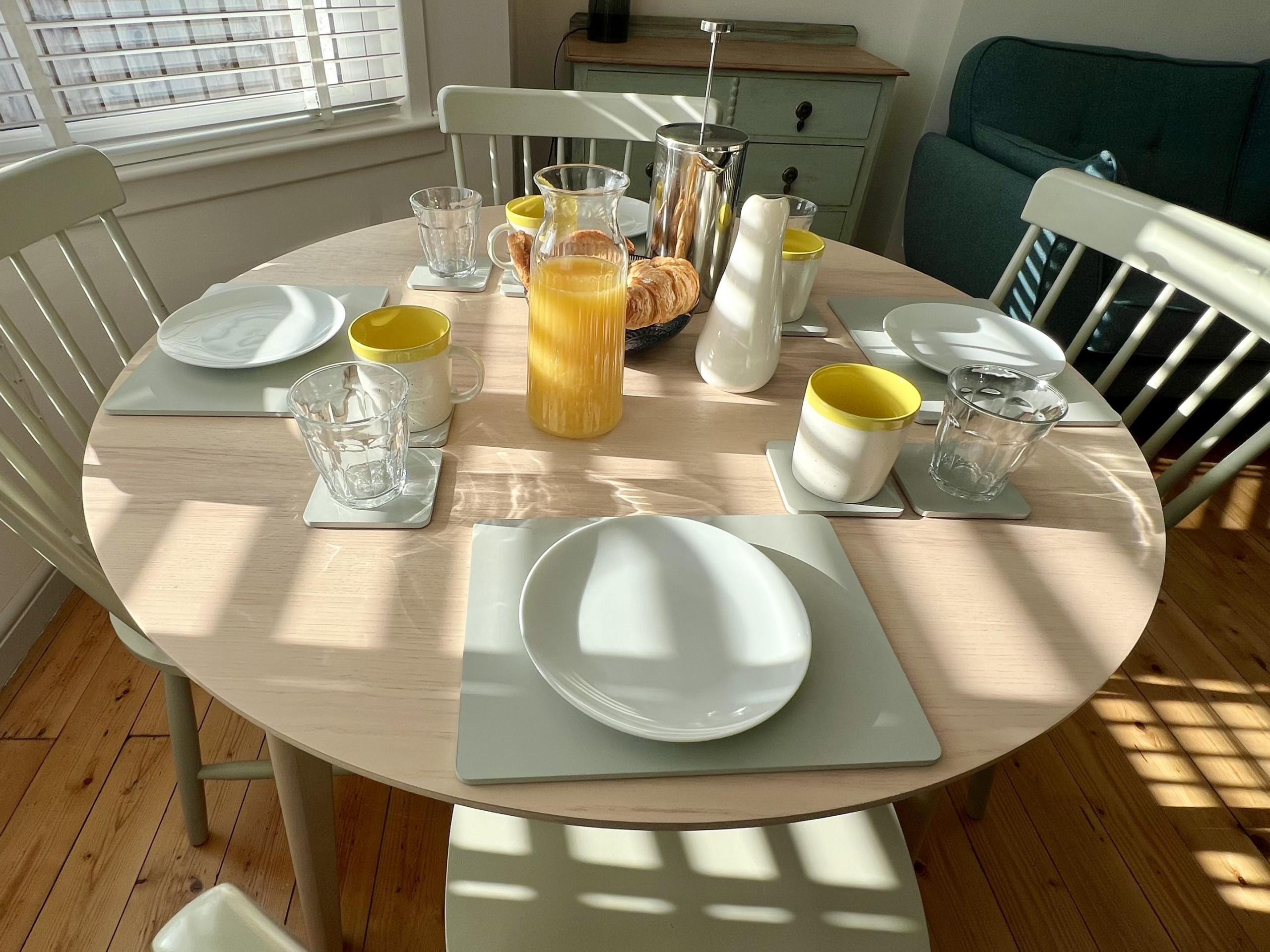 Luxury Breakfast HamperEmpiece el día con ventaja con nuestra cesta de desayuno, repleta de deliciosas delicias de productores probados y confiables con sede local, en Fife y toda Escocia. Entregada para esperar su llegada, con productos refrigerados, su cesta contendrá los siguientes productos, para alimentar a 2 invitados durante 1 o 2 días: 1 litro de zumo de manzana Cawston Cloudy, 1 litro de leche semidesnatada, 500 g de muesli Your Piece Fife Mix. 4 croissants horneados localmente, un pan blanco orgánico, 340 g