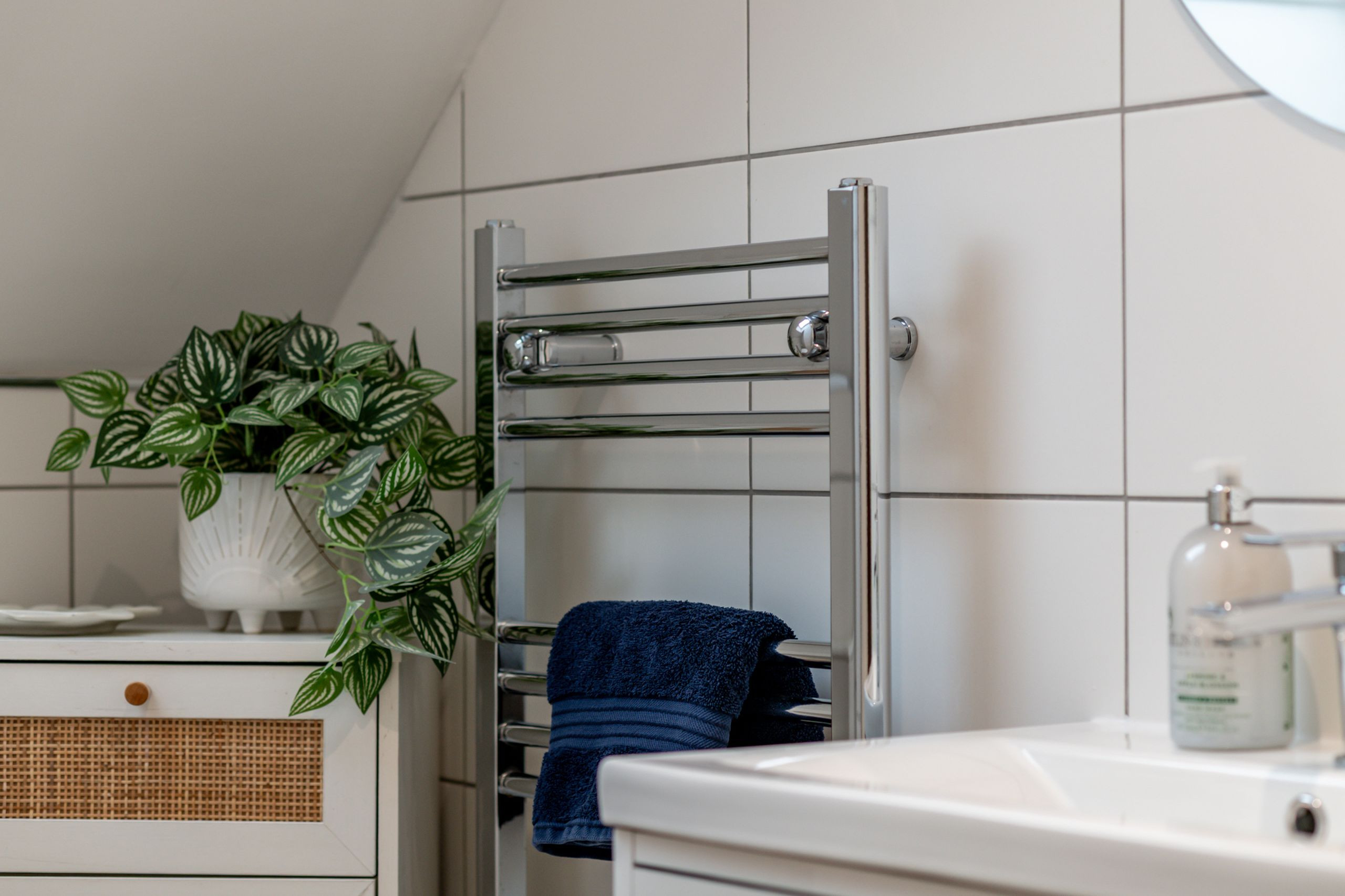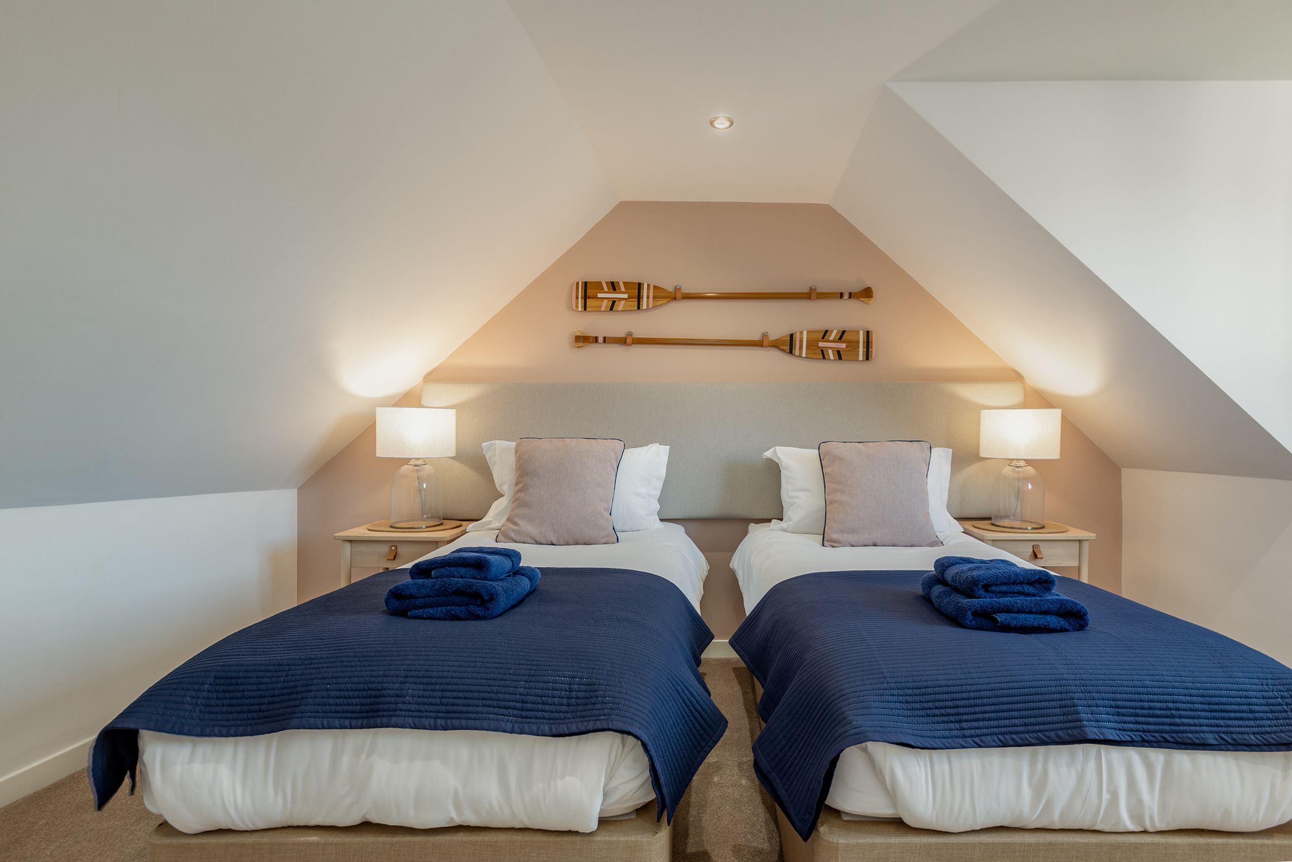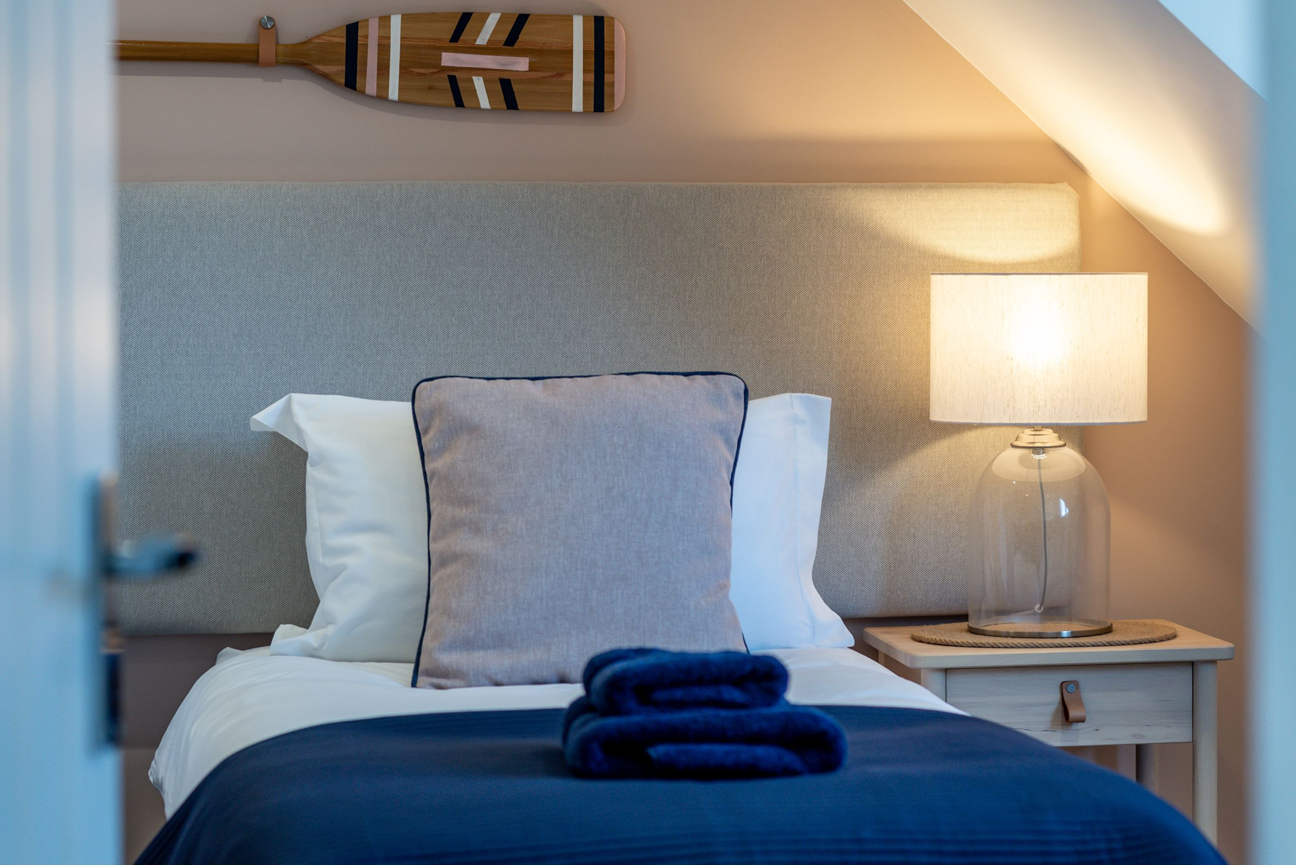 Four inviting bedrooms are set across the apartment, including a couple of stylish doubles and bright twin rooms dressed in soft linens and seaside prints—ideal for mixed groups. A contemporary family bathroom and additional shower facilities make getting ready easy, while Wi-Fi, central heating and an iron add everyday convenience.