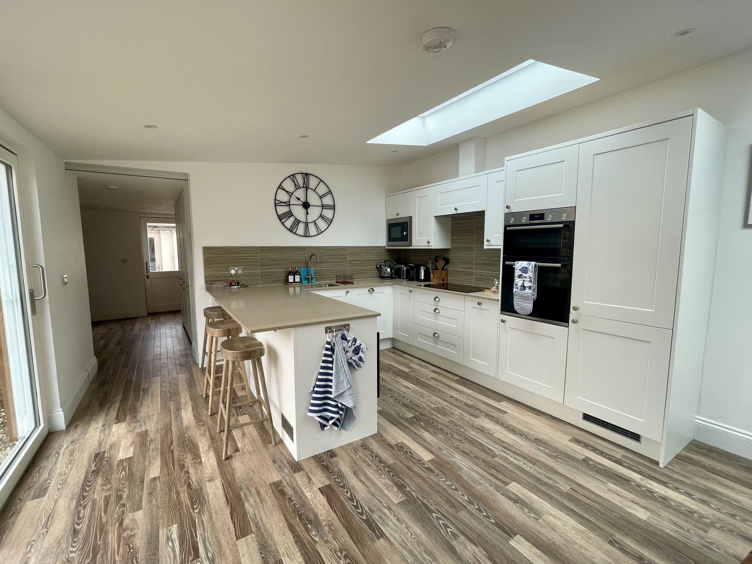 Beautifully extended and renovated inside (2024), this completely self contained lower half of a Victorian house is stunning, sleeps 9 comfortably, has 3.5 bathrooms, and luxurious living space. Only a few minutes walk from our sandy harbour beach and local shops/cafes. This property is ideal for a family group including individuals with limited mobility, as it is all on one level internally. Off street parking for up to 3 cars, and fully enclosed rear patio and garden. Wifi. Max of 2 small dogs accepted (Terms and Supplements apply).