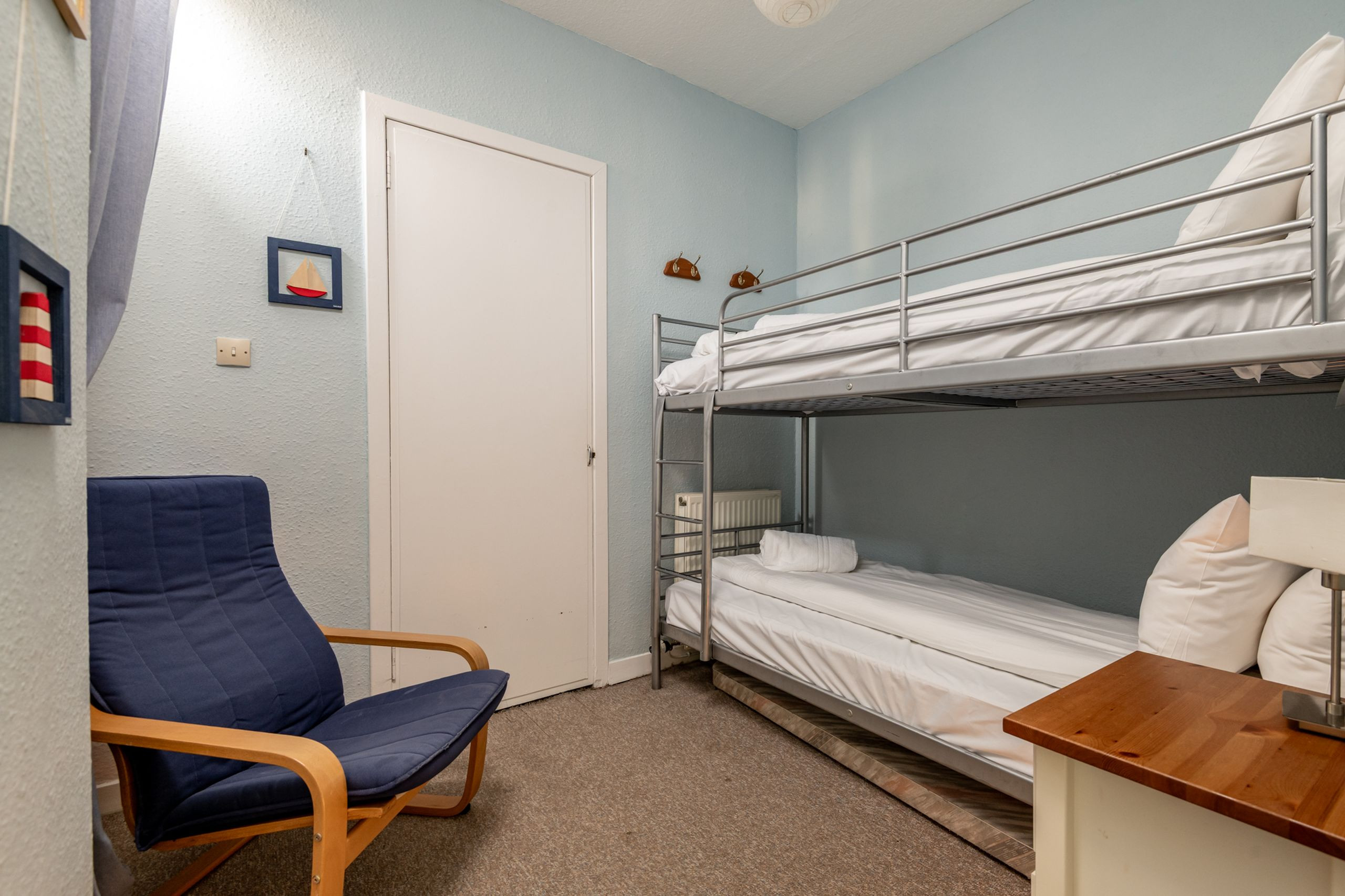 Ground Floor - 1 double bedroom, 1 twin bedroom with bunk beds, 1 shower over bath WC, open-plan kitchen/lounge. Please advise if you wish to use the sofabed.1 review -
