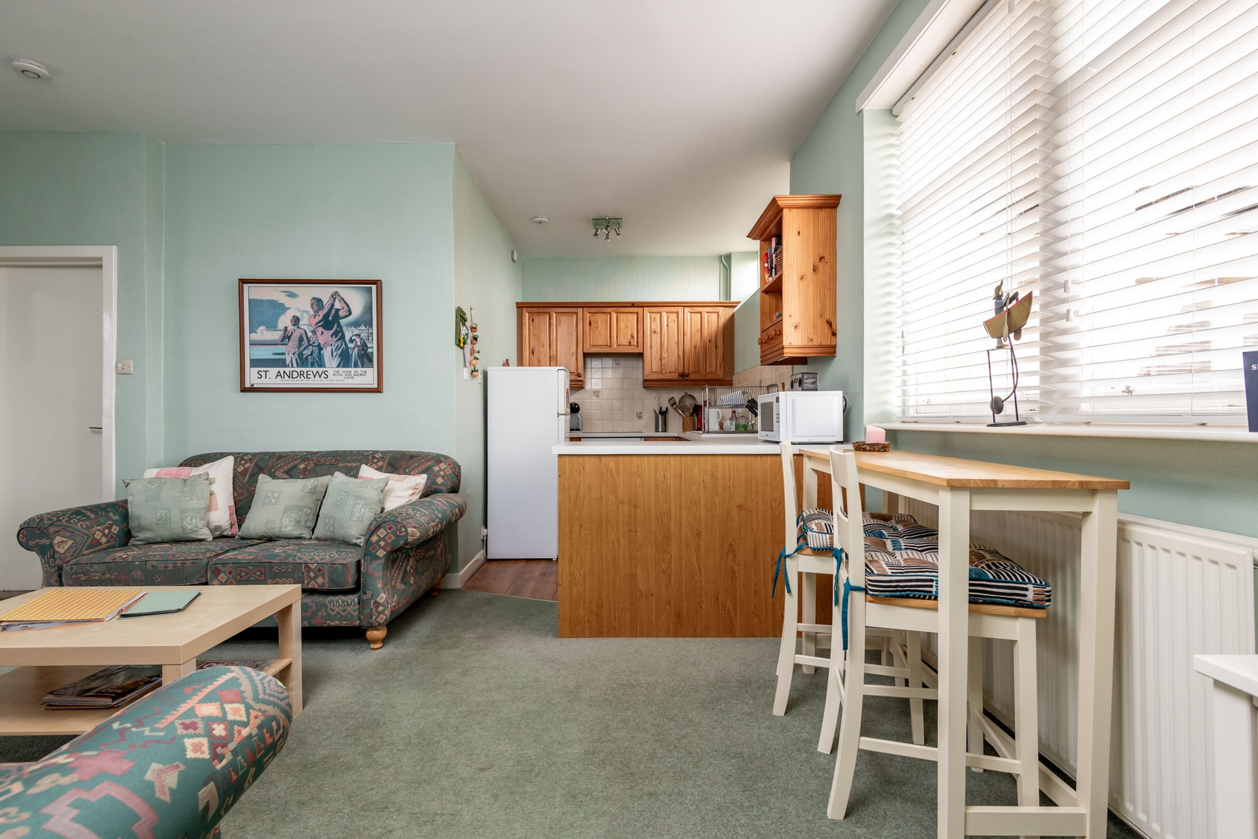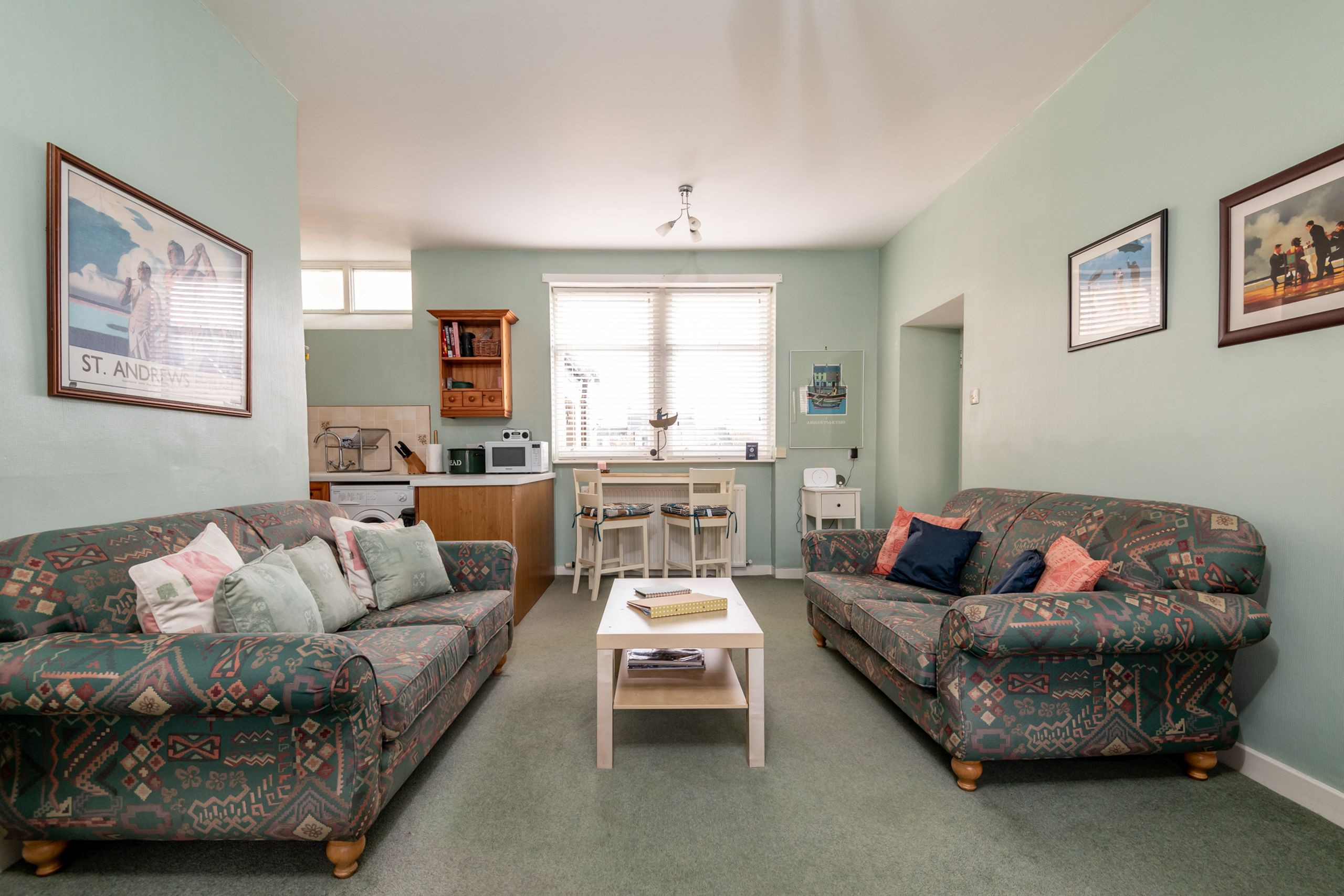 Tucked behind a traditional manor house just off the lane, Flat 1 offers bright, comfortable coastal living in one of Elie’s most enviable spots. It’s the closest apartment to the long sandy beach with no roads to cross – simply step out, follow the lane and you’re on the sand in moments. From here it’s also an easy stroll up to the Pavilion, golf course, sports club and village centre, making it a great choice for small families, couples and guests looking for mostly all-on-the-level accommodation (please note there are four steps up to the main door). Wi-Fi is included and the property is pet friendly, so four-legged beach lovers are welcome too.