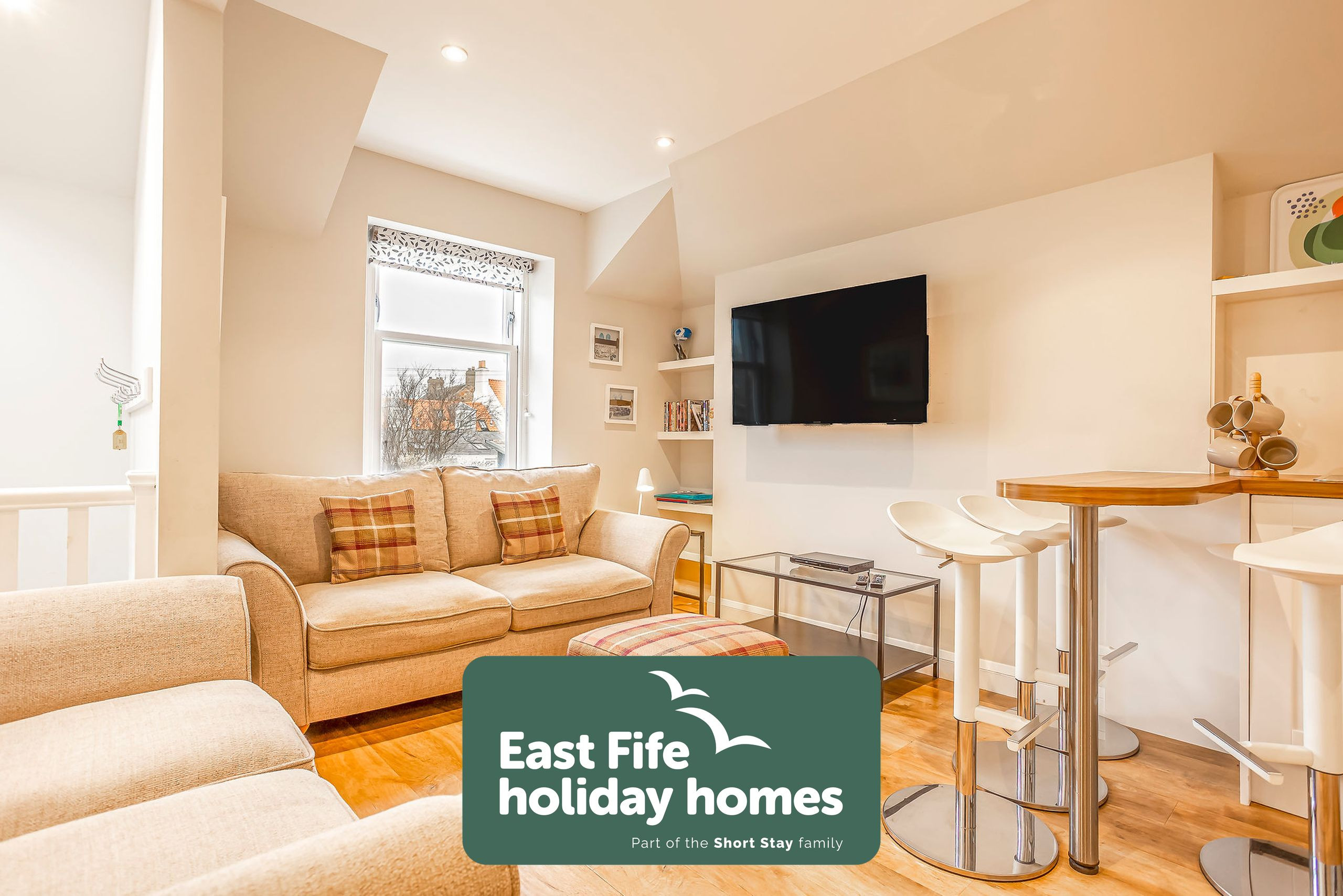 Set just behind Earlsferry’s long sandy beach, this contemporary first-floor apartment gives you direct path and gate access onto the shore, plus a private parking space and secure outhouse storage for bikes and golf clubs. You’re a short stroll from the award-winning Ship Inn overlooking the harbour, the village deli for fresh morning croissants, bakers, newsagent, gift shops and a choice of coffee shops and cafés – everything you need for an easy coastal break on foot. St Andrews, the historic Home of Golf, is around 20 minutes’ drive away, putting world-famous courses and a buzzing town centre within simple reach.