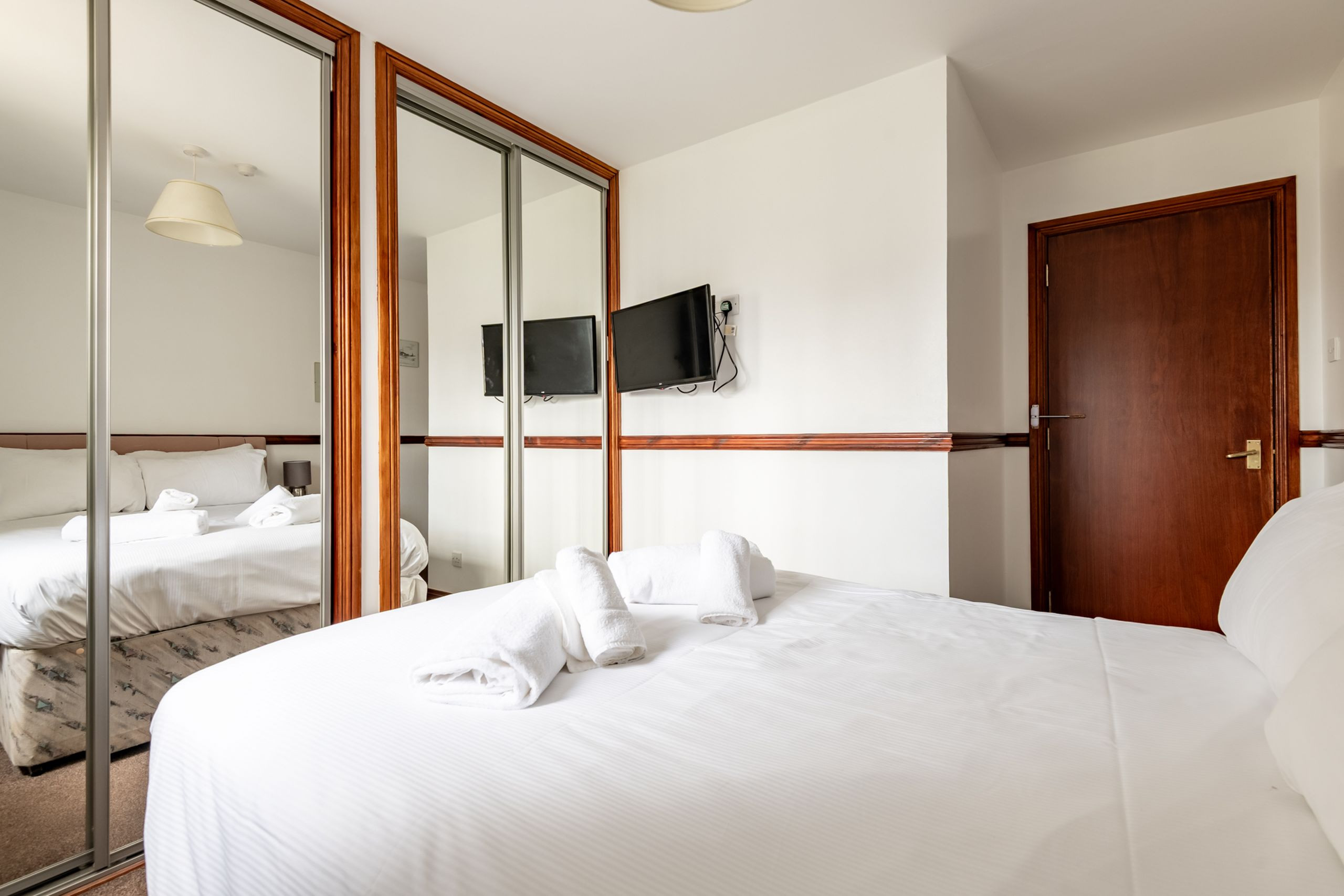 Attractive, 2-bedroom, 1 bathroom apartment. Comfortably sleeps 5 in one king size, one double and one sofa bed. The king-sized bed can be split apart into two singles. There is a Smart TV, a Nespresso coffee machine which we provide pods to get you started, hair dryer, iron and ironing board.