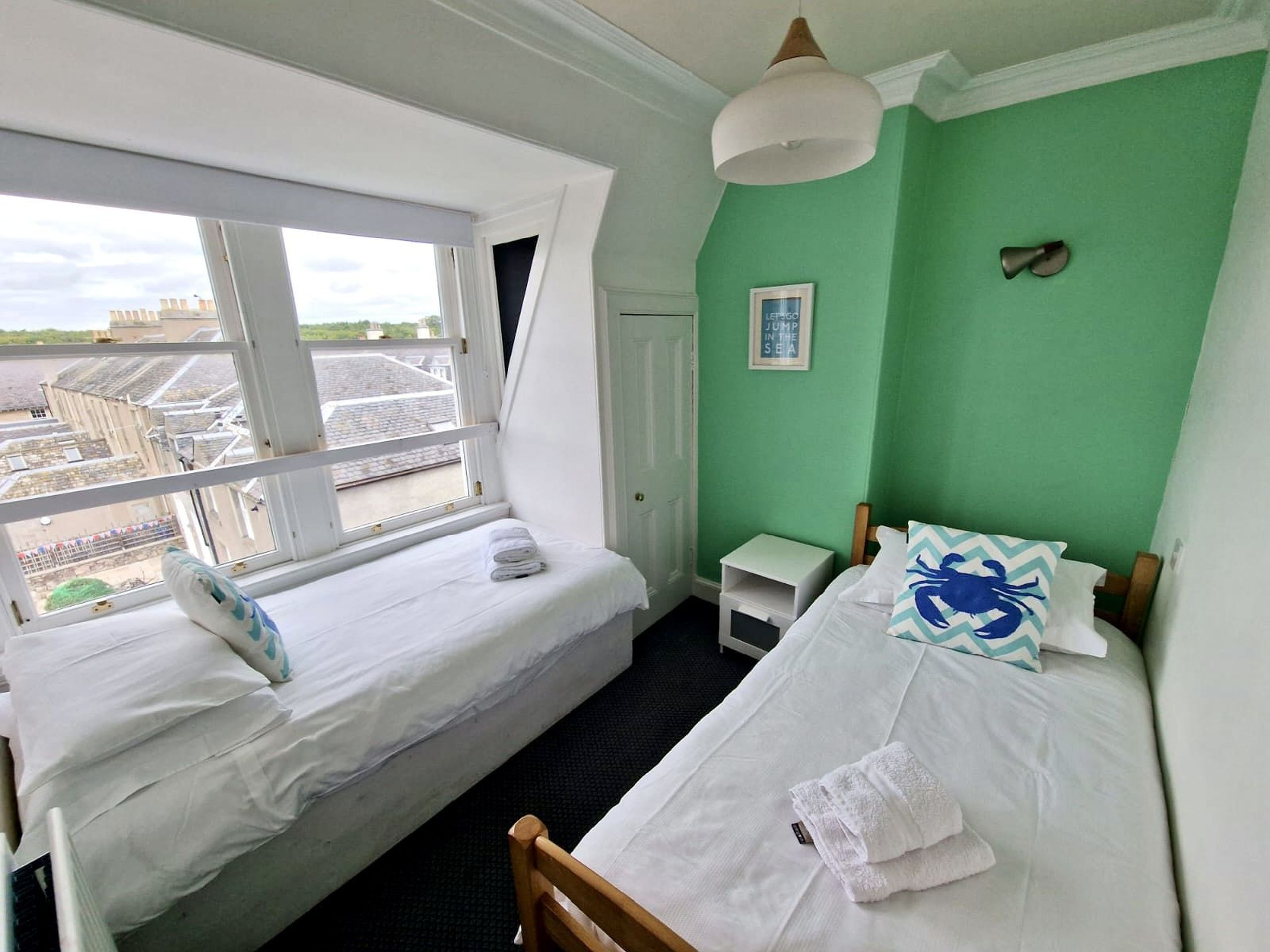 The Crow's Nest is a lovely apartment with sea views towards Elie Ness Lighthouse and beyond, positioned on the 2nd floor of this Category 'C' Listed building (formerly the Queen's Hotel) on Elie High Street facing the Toll Green. It is perfectly positioned for easy access to local shops, pubs and restaurants. Our long sandy beach is less than 5 minutes walk away. Wi-fi. 1 well behaved dog is permitted (Supplement applies)