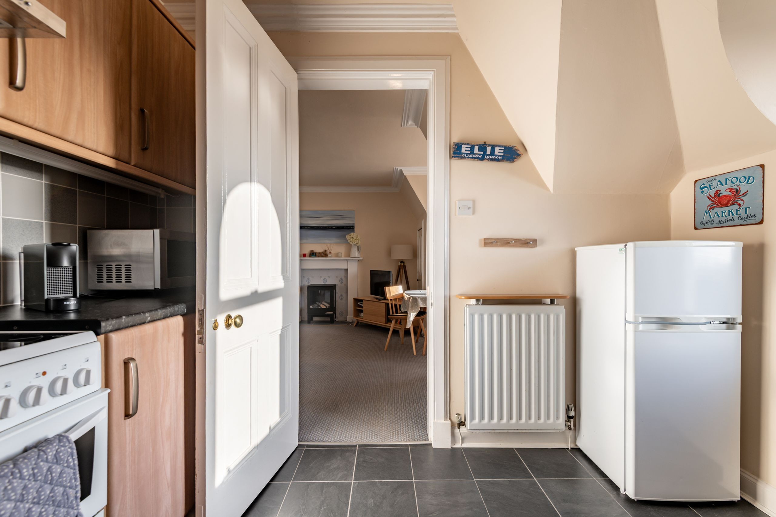 The Crow’s Nest is a welcoming top-floor apartment with lovely sea views towards Elie Ness Lighthouse, Elie Harbour and across the Firth of Forth. Set on the second floor of a Category C-listed building (the former Queen’s Hotel) on Elie High Street facing the Toll Green, it’s perfectly positioned for enjoying village life. Local shops, pubs and restaurants are on your doorstep, and Elie’s long sandy beach is less than a five-minute walk away. Wi-Fi is included, and one well-behaved dog is welcome (supplement applies).