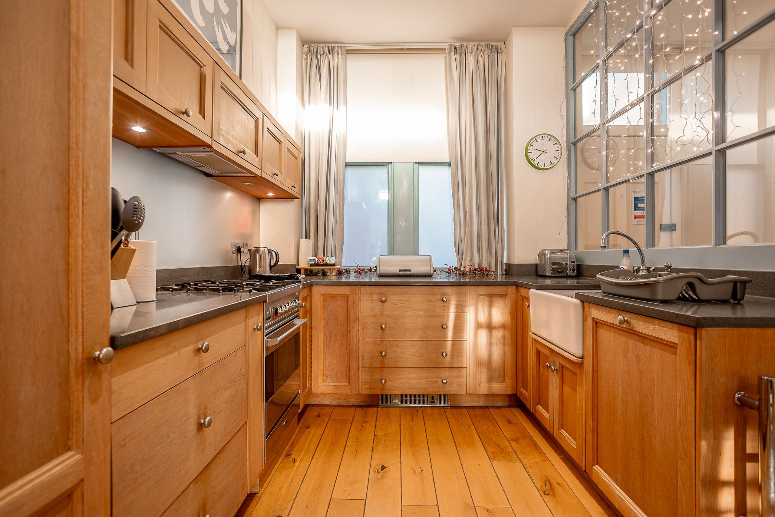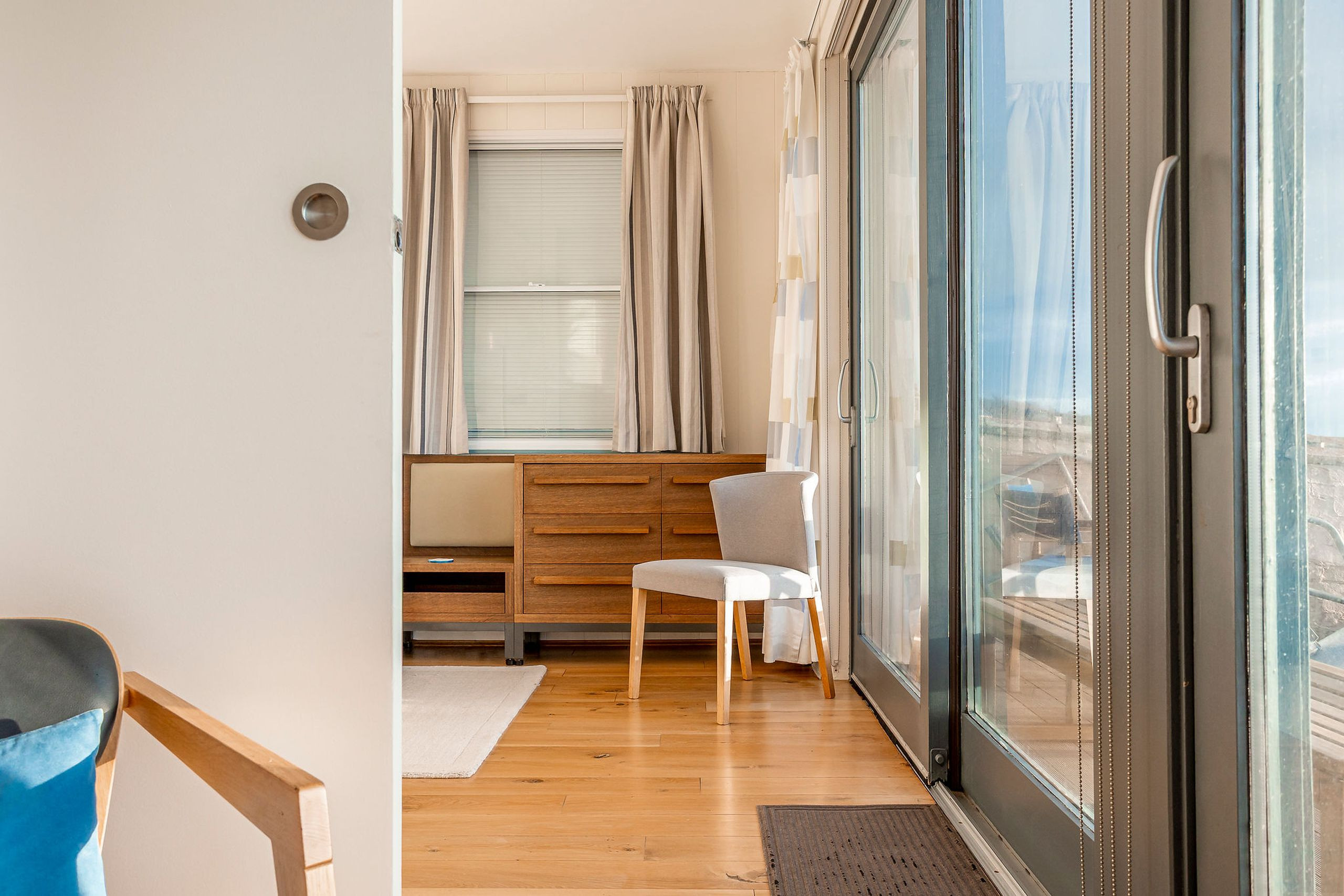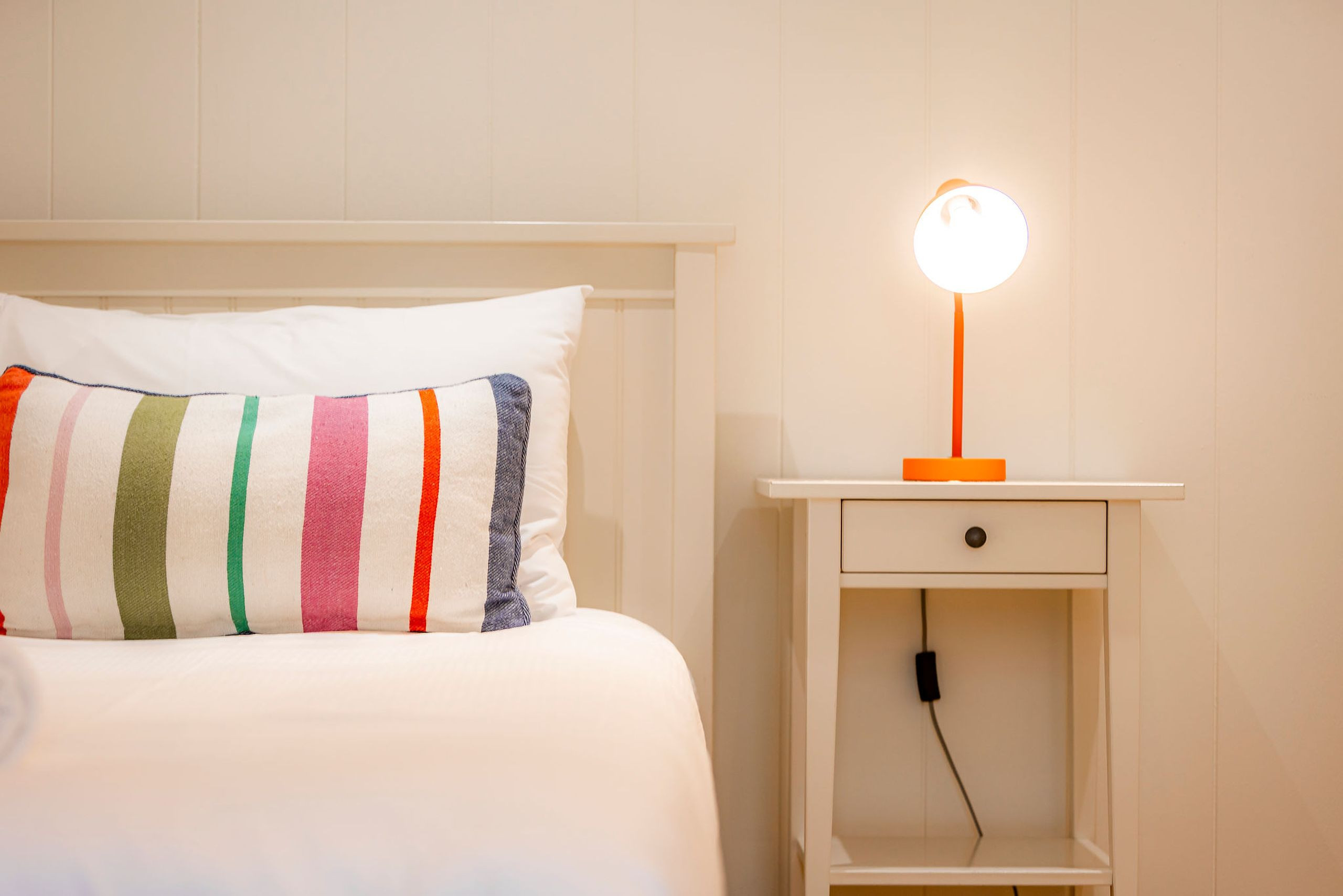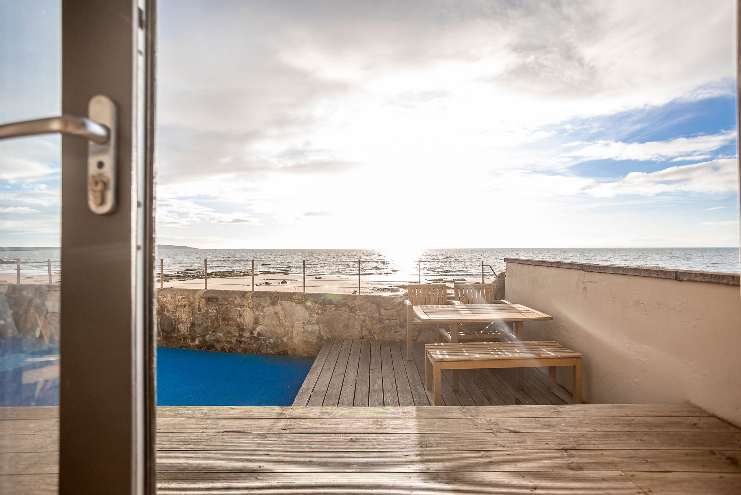 Outside, the private patio is mostly laid with a child-friendly surface and comes with outdoor furniture, an outside shower for rinsing off sandy feet and wetsuits, and a gate with steps down to the beach. It’s a fantastic spot to enjoy sunrise coffees, lazy afternoons and sunset skies over the Firth of Forth.