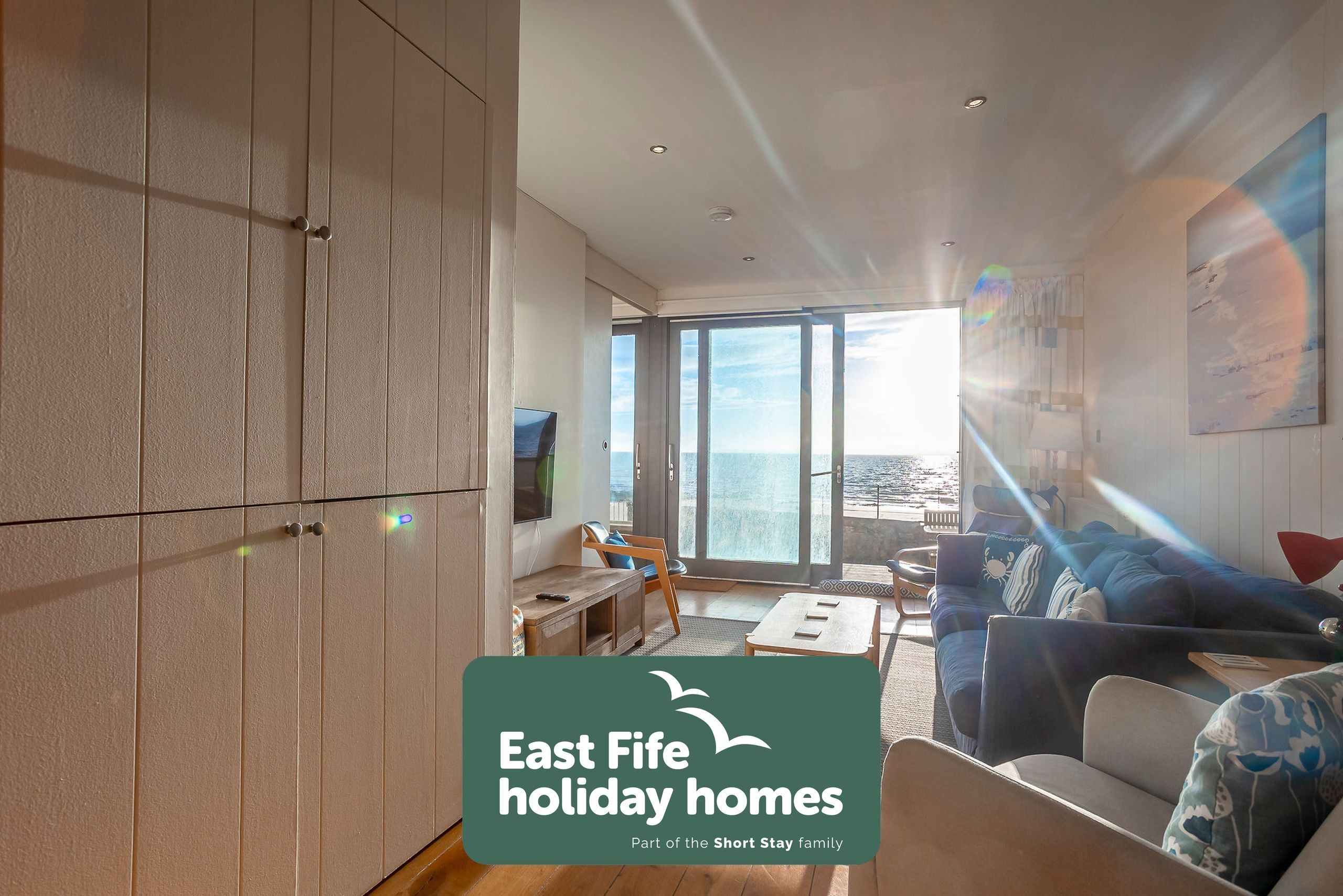 Set right on the beach at Lower Largo, this stunning contemporary ground-floor apartment gives you uninterrupted sea views and direct access to the sand from its private, child-friendly patio. Steps lead straight down to the shore, so you can be on the beach within moments for paddling, rockpooling or walks along the bay. Thoughtfully modernised with an open-plan layout to maximise the outlook, it’s a wonderfully relaxing bolt hole for a quiet romantic escape or a laid-back family break, with pubs and restaurants just a short stroll away. Broadband and a Smart TV keep everyone connected and entertained.