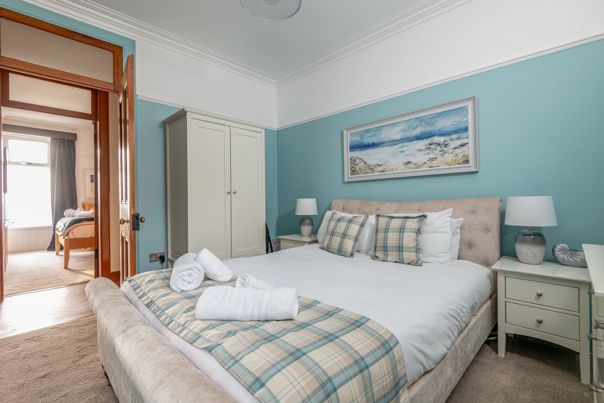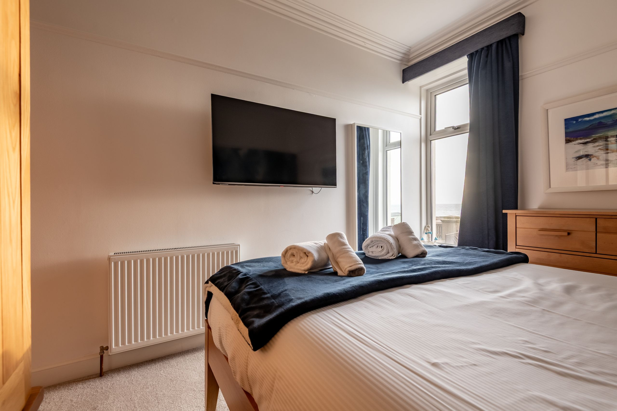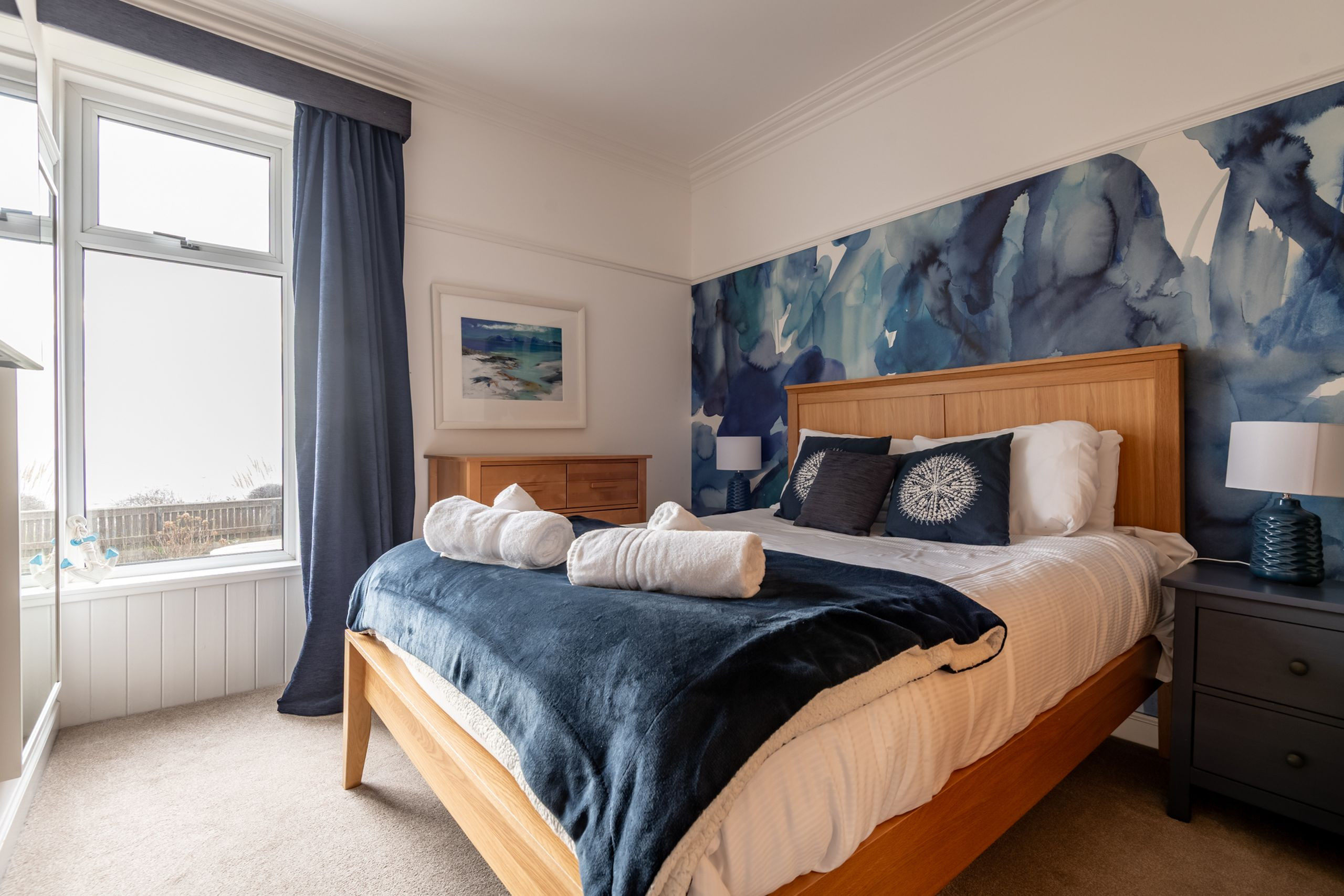 With showstopping sea views from every front window and the beach just a stone’s throw away, Rollo Villa is coastal living at its best. This elevated ground-floor conversion has been completely refurbished and elegantly furnished (late 2022) to create a stylish, contemporary four-bedroom, two-bathroom holiday home with all the charm of a traditional villa and the comfort of a modern beach retreat. A private front garden gives you a sunny spot to sit out, with the Fife Coastal Path only moments away for shoreline walks. Wi-Fi is included for easy planning and streaming.