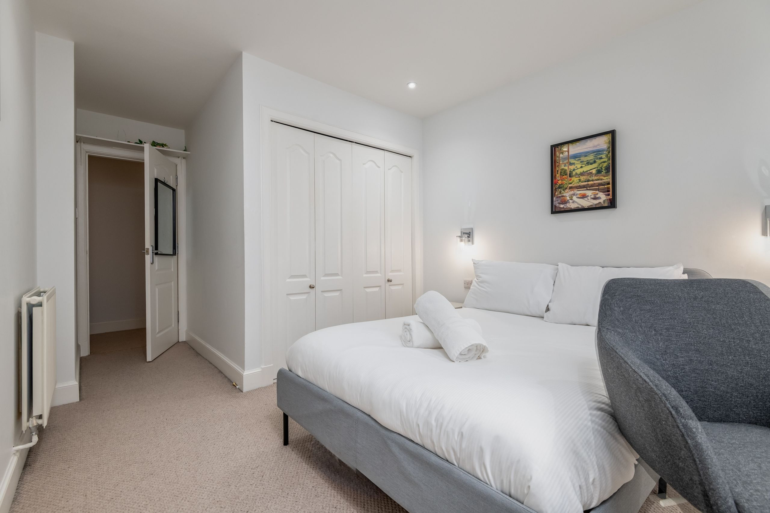 Queens Garden Residence will accommodate up to six guests, with two double bedrooms one with a double bed, the other with a single trundle bed and a double sofa bed in the lounge area for two further guests. The property has been renovated to a high standard with some period features for example the original fireplace and a lovely cornice ceiling design. There is a modern bathroom with a walk in shower, fully equipped kitchen, small garden area and street parking available, however this may be limited during peak times. -
