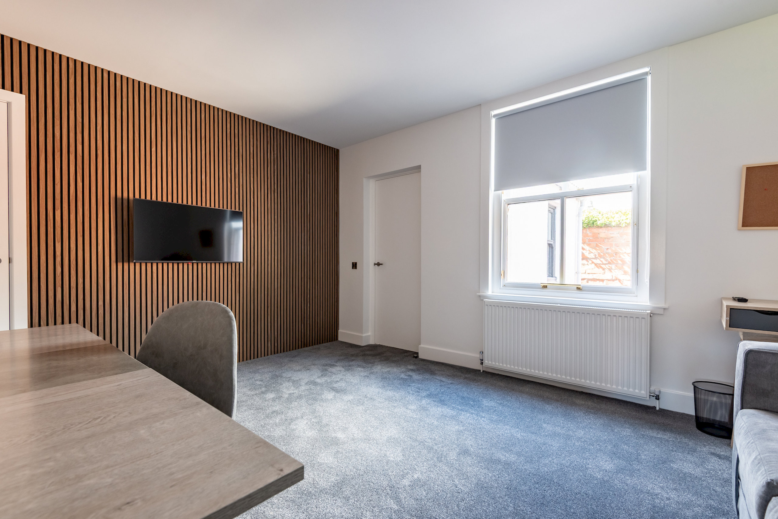 14 Marine Place has a bright, modern interior with a smart open plan living and dining space, perfect for relaxing after a day exploring the town. The fully equipped kitchen makes self catering easy, while the dining area and dedicated workspace add extra flexibility for longer stays or working visits.