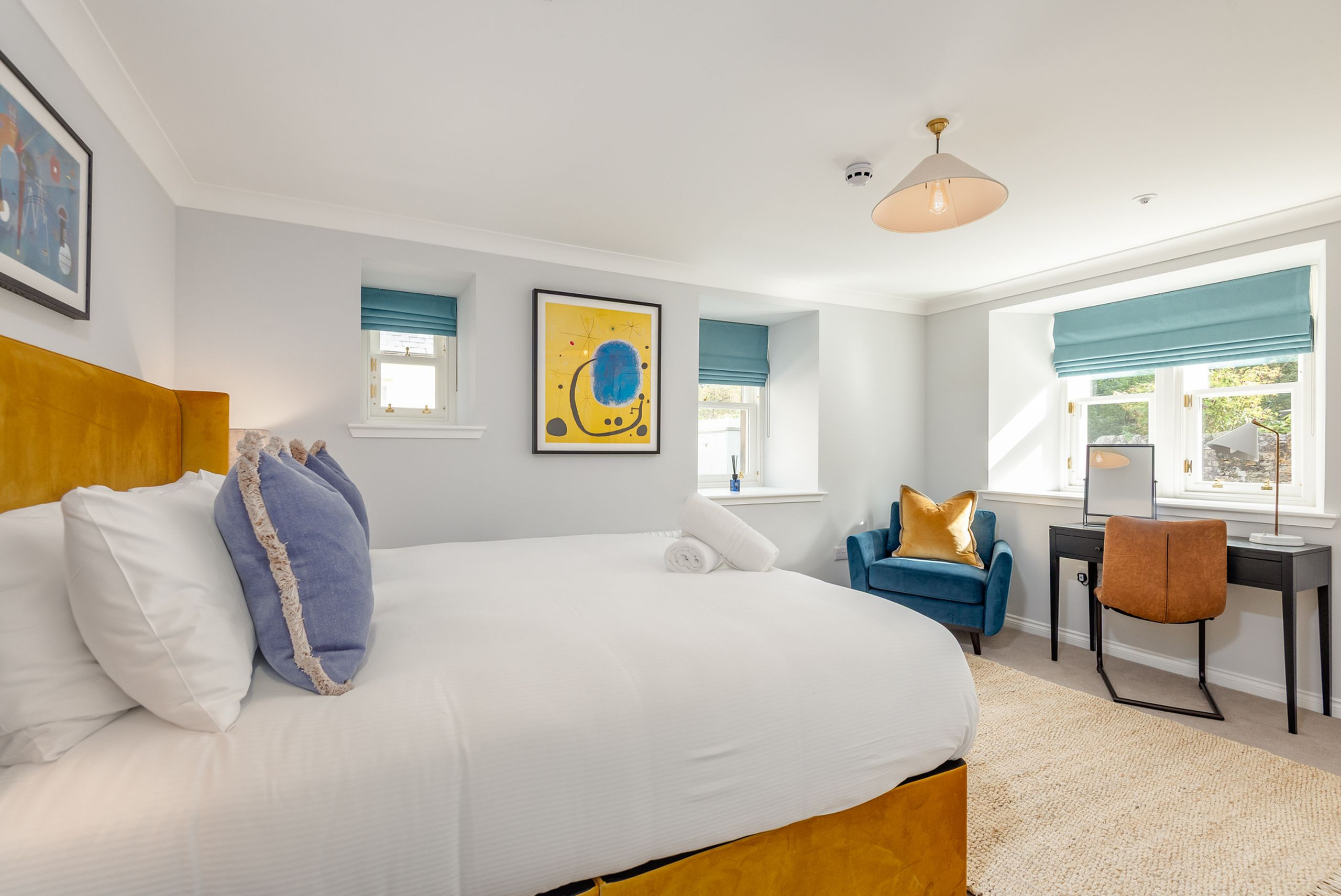 Skye Sands | St Mary’s Gardens (No 8) pairs boutique styling with the comfort of a modern self-catering stay. The sociable living, dining and kitchen area is made for unwinding—curl up in front of the TV, gather for relaxed dinners, or perch at the breakfast island with a lazy morning coffee.