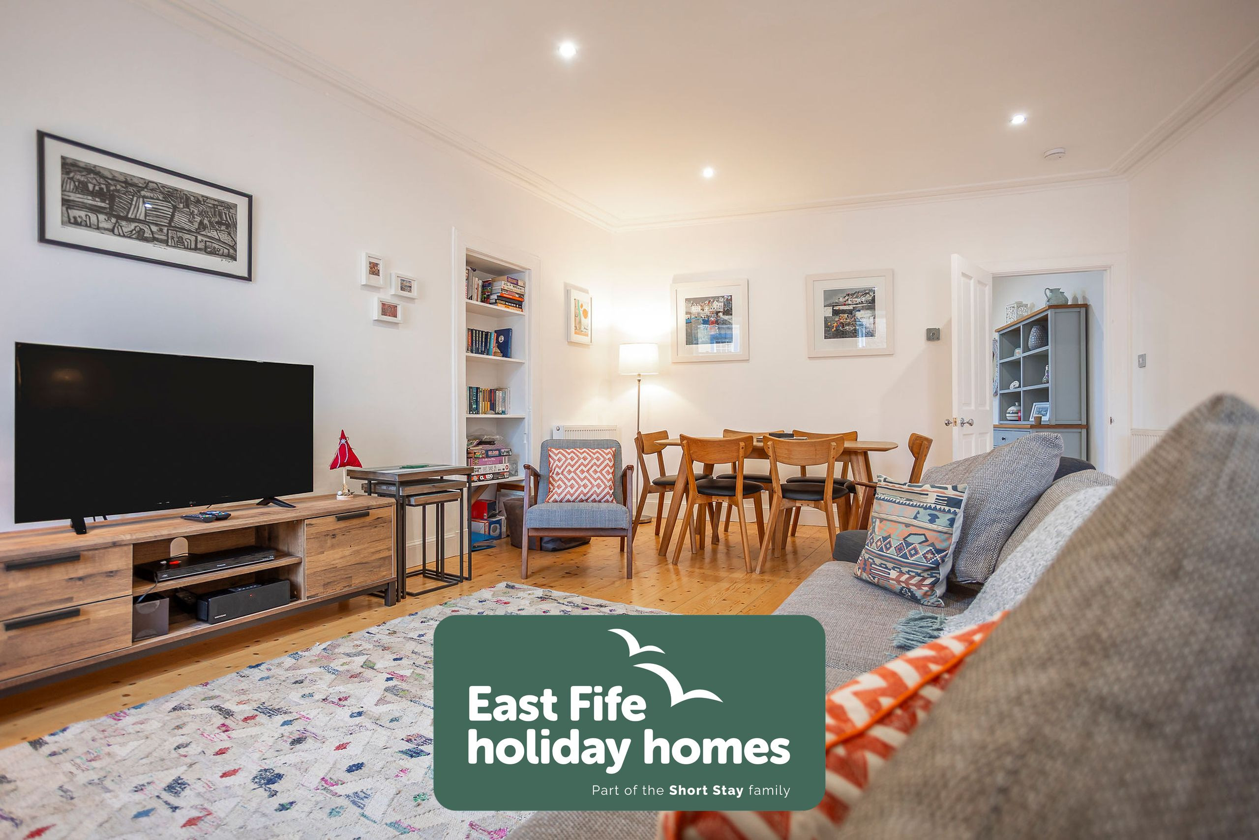 This delightful, converted traditional sail loft, is in an idyllic location overlooking St Monans Harbour. With great sea views, and lots of character, the 3 bedroom, 2 bathroom interior formed over 2 levels, is spacious, bright and airy. Mid Shore forms part of the Fife Coastal Path, which offers coastal walks from Kirkcaldy through to St Andrews. It is ideally located for both families and golfers alike. To the side is a small area of shared patio for barbecues. Wi-fi.