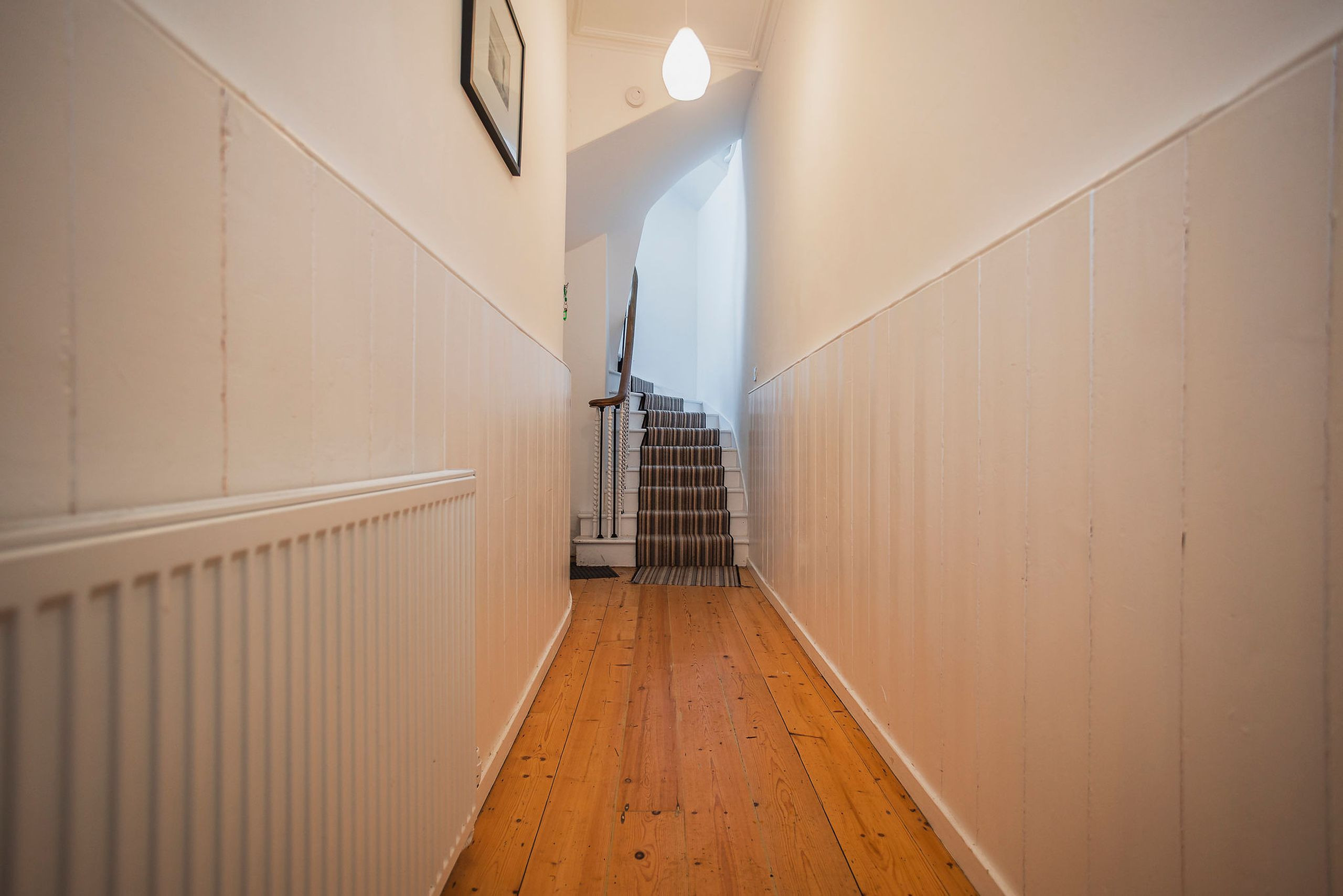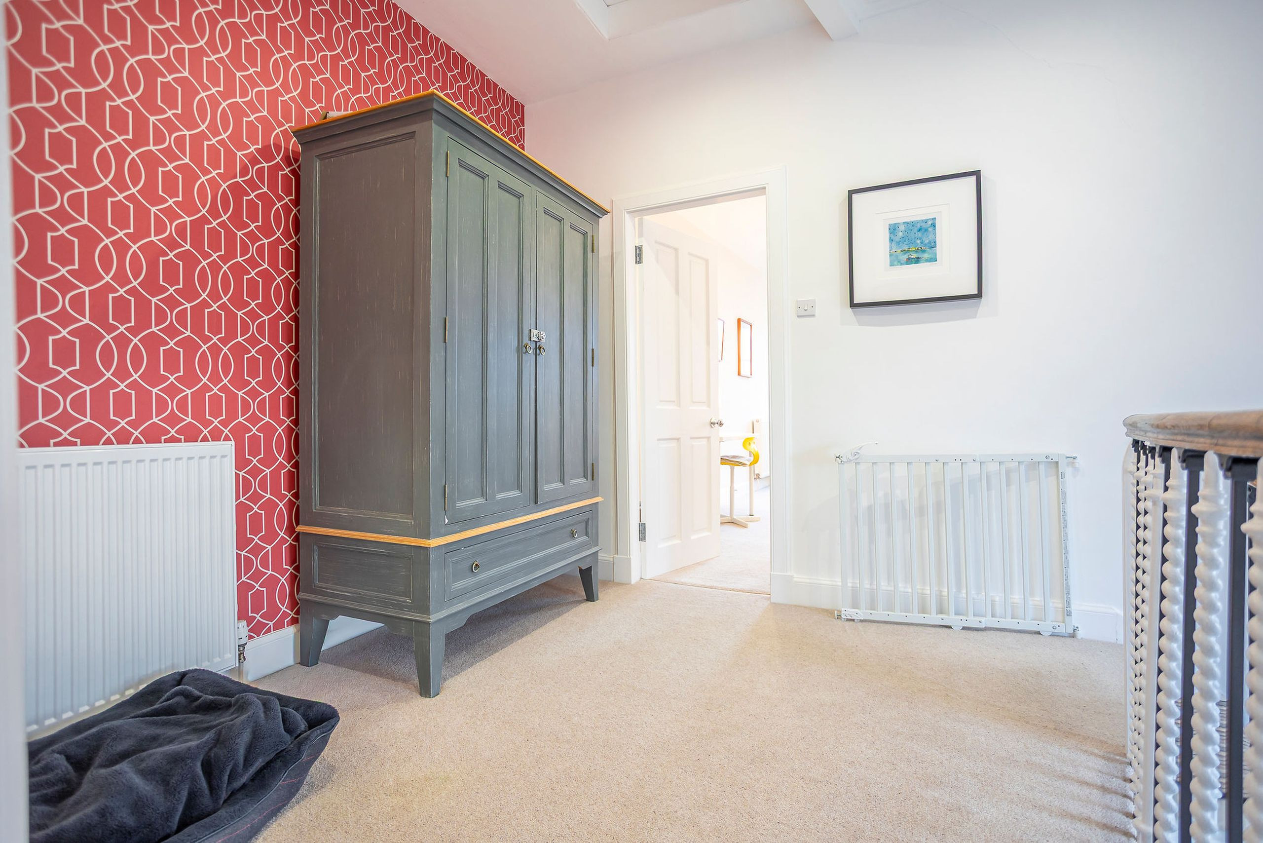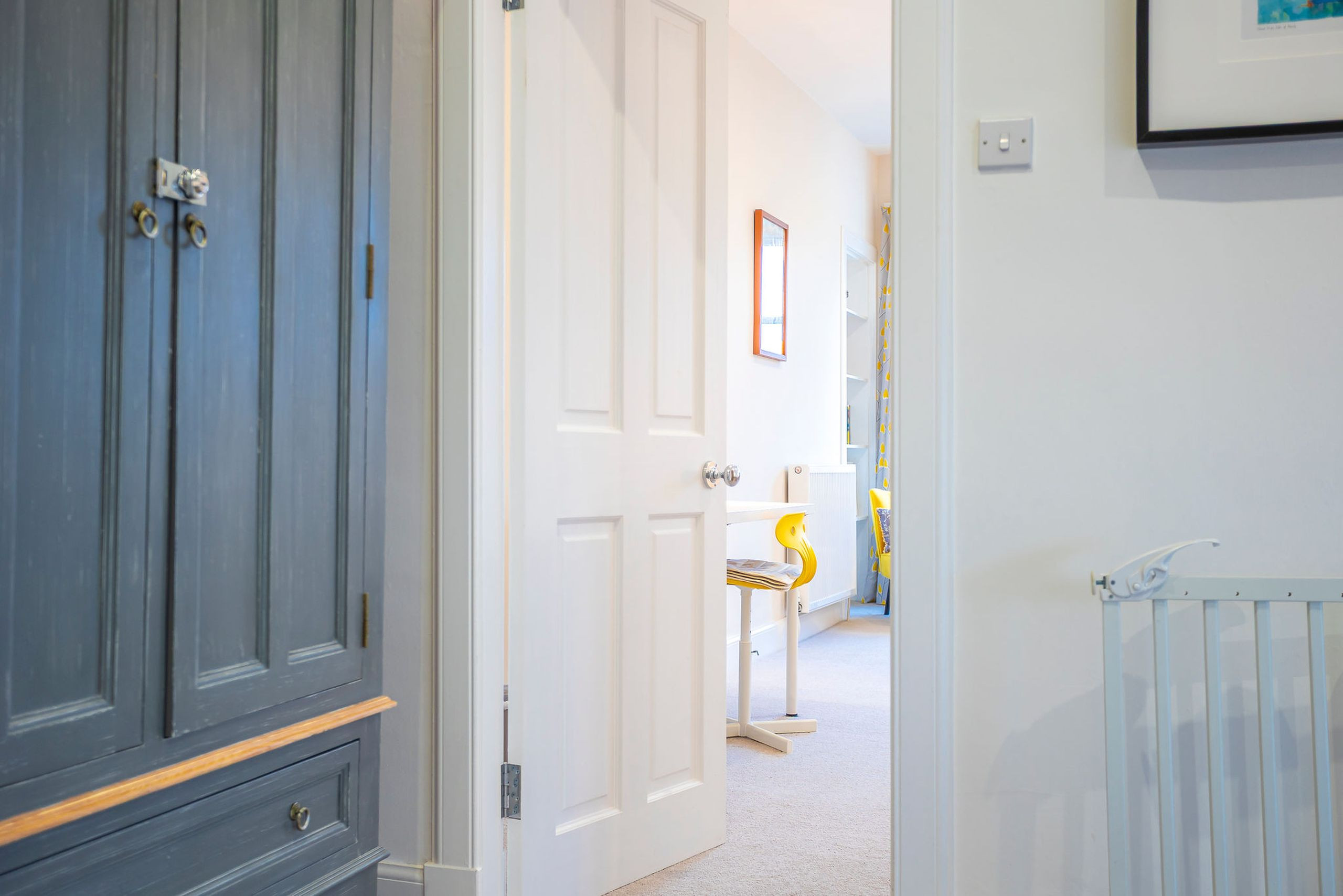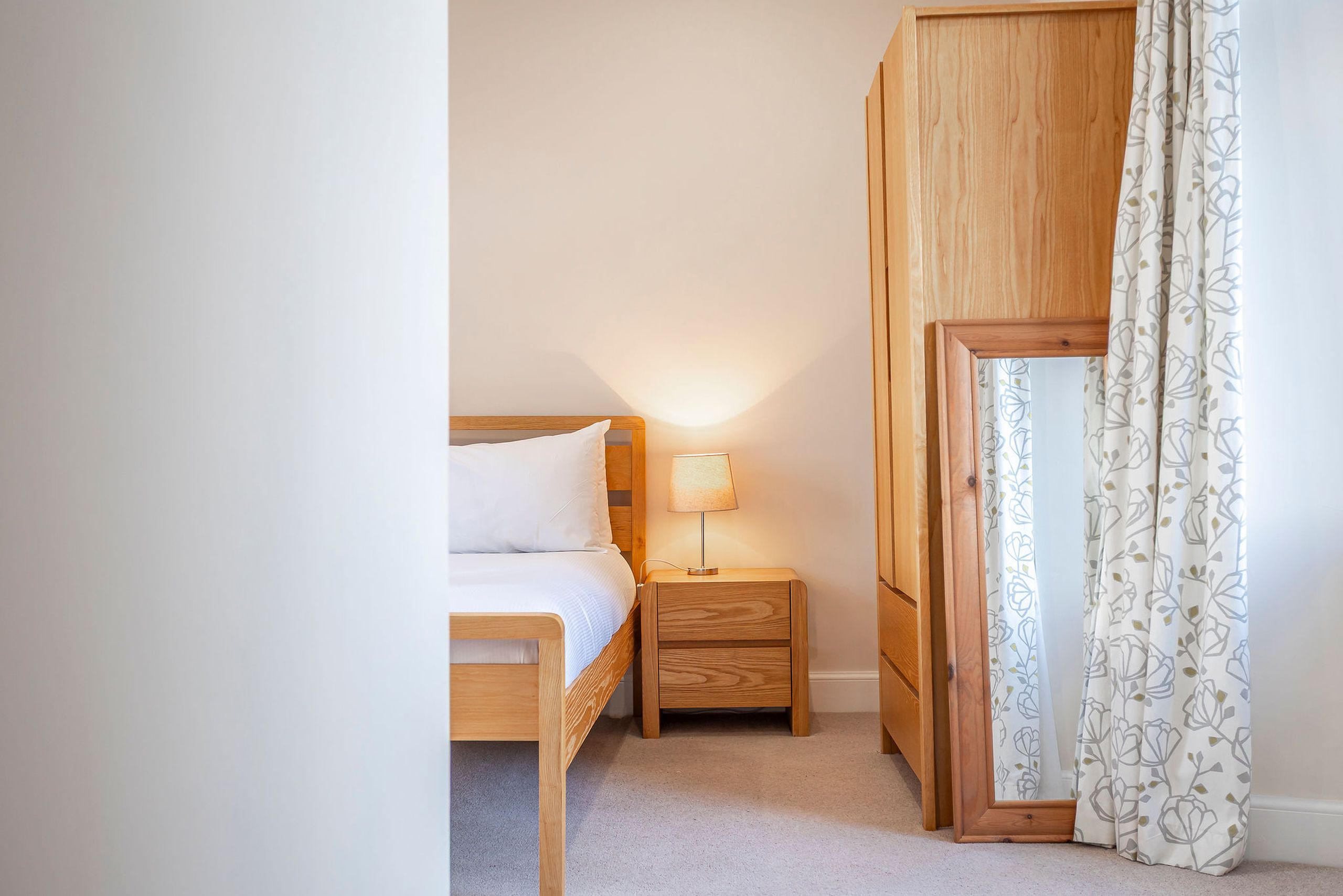 Set over two upper floors, the first level is all about relaxed, social living. A spacious reception hall leads into a fabulous lounge/dining room with twin front windows, wooden floors, a comfy sofa and accent chairs, Smart TV, and a dining table for six. There’s even a small desk for catching up on emails or planning the next day’s exploring. To the rear, the bright breakfasting kitchen pairs hardwood worktops with contemporary units and comes fully equipped with induction hob, oven, integrated fridge with icebox, dishwasher, washing machine, microwave, kettle, toaster and cafetière, plus a table for four. A stylish refitted shower room with rainfall corner shower, basin and WC completes this floor.