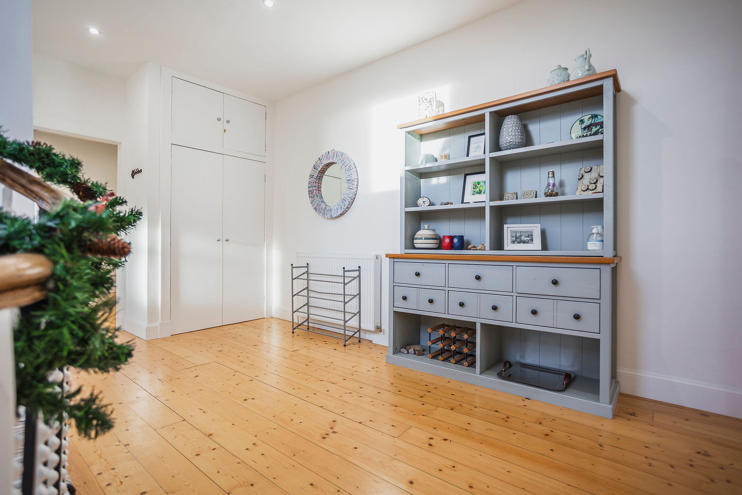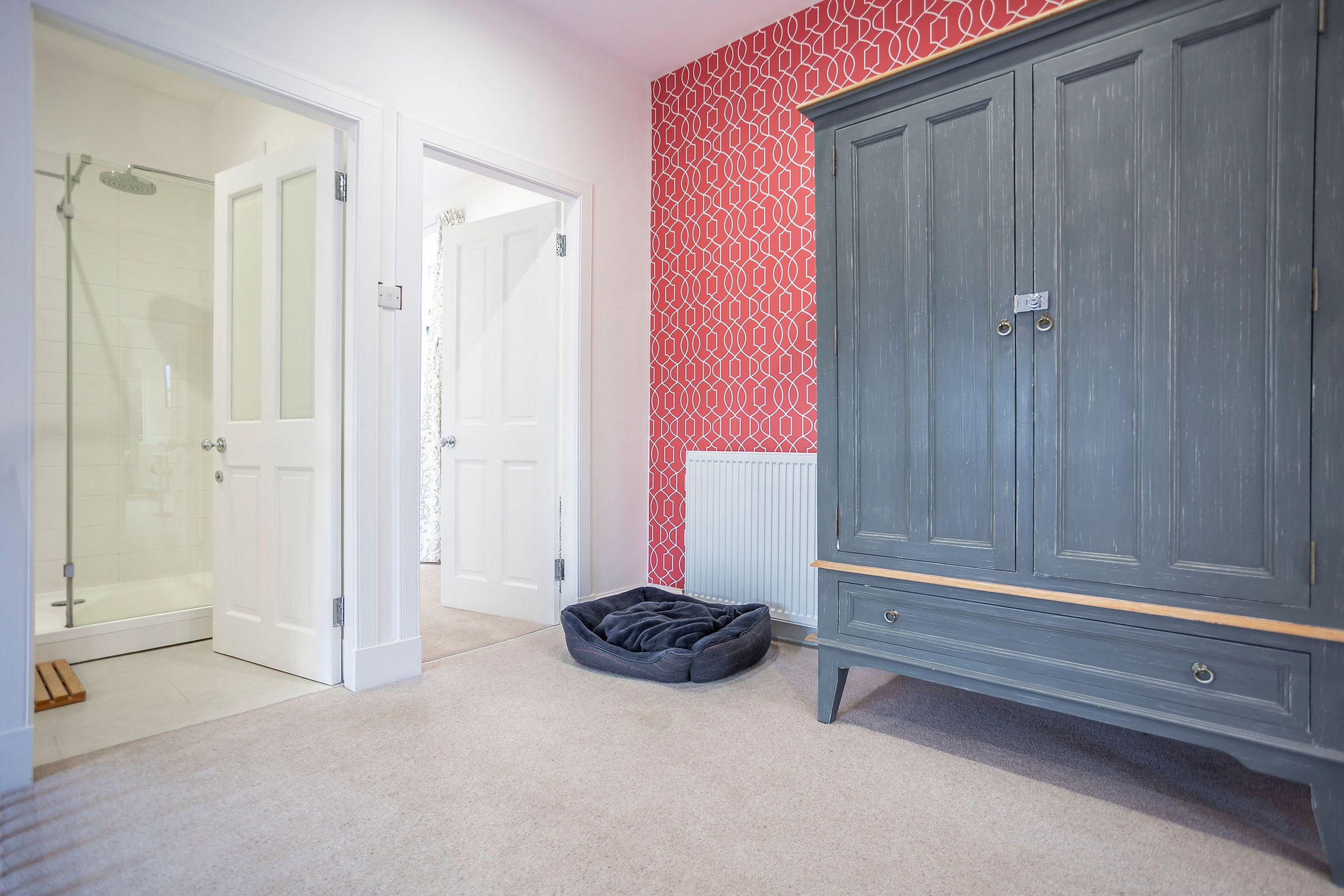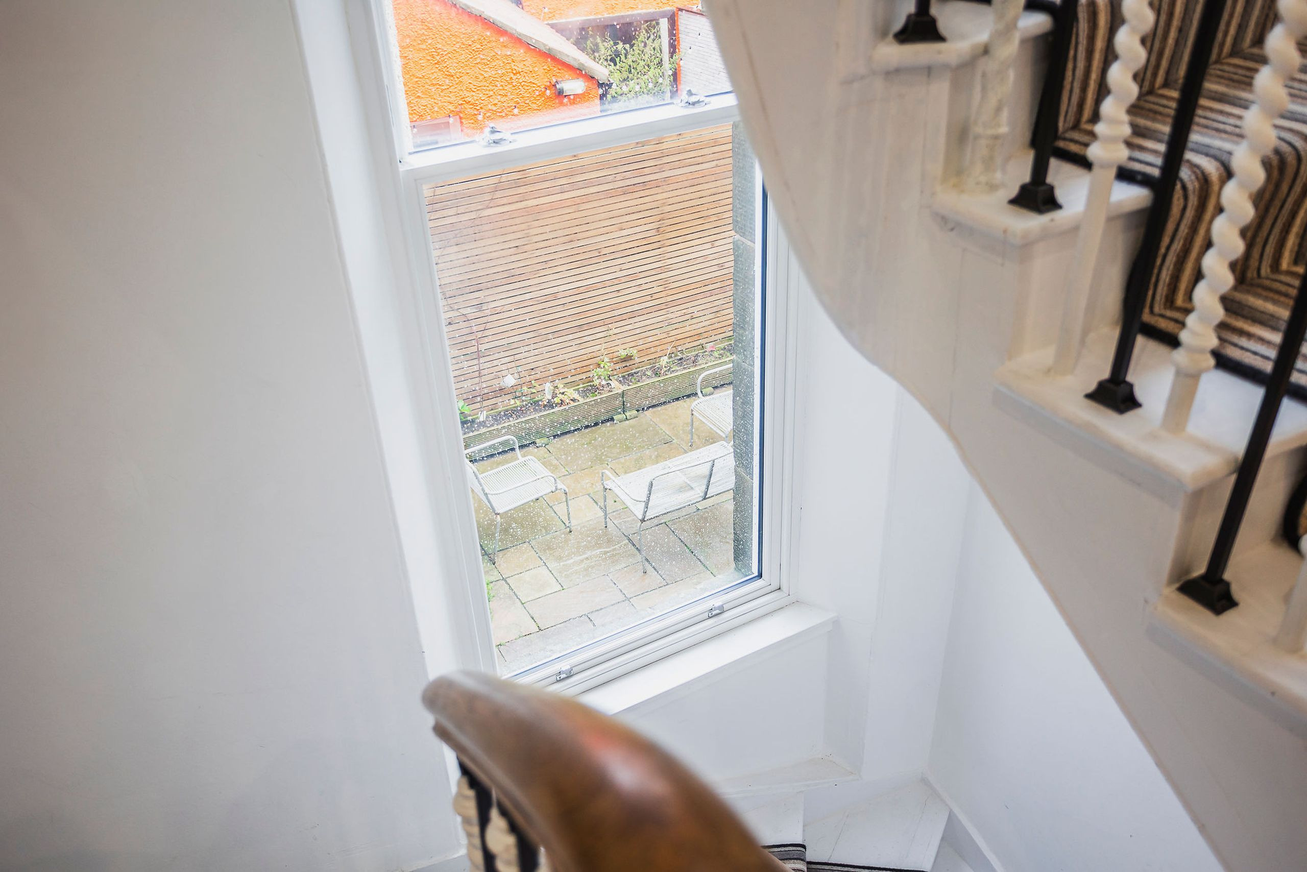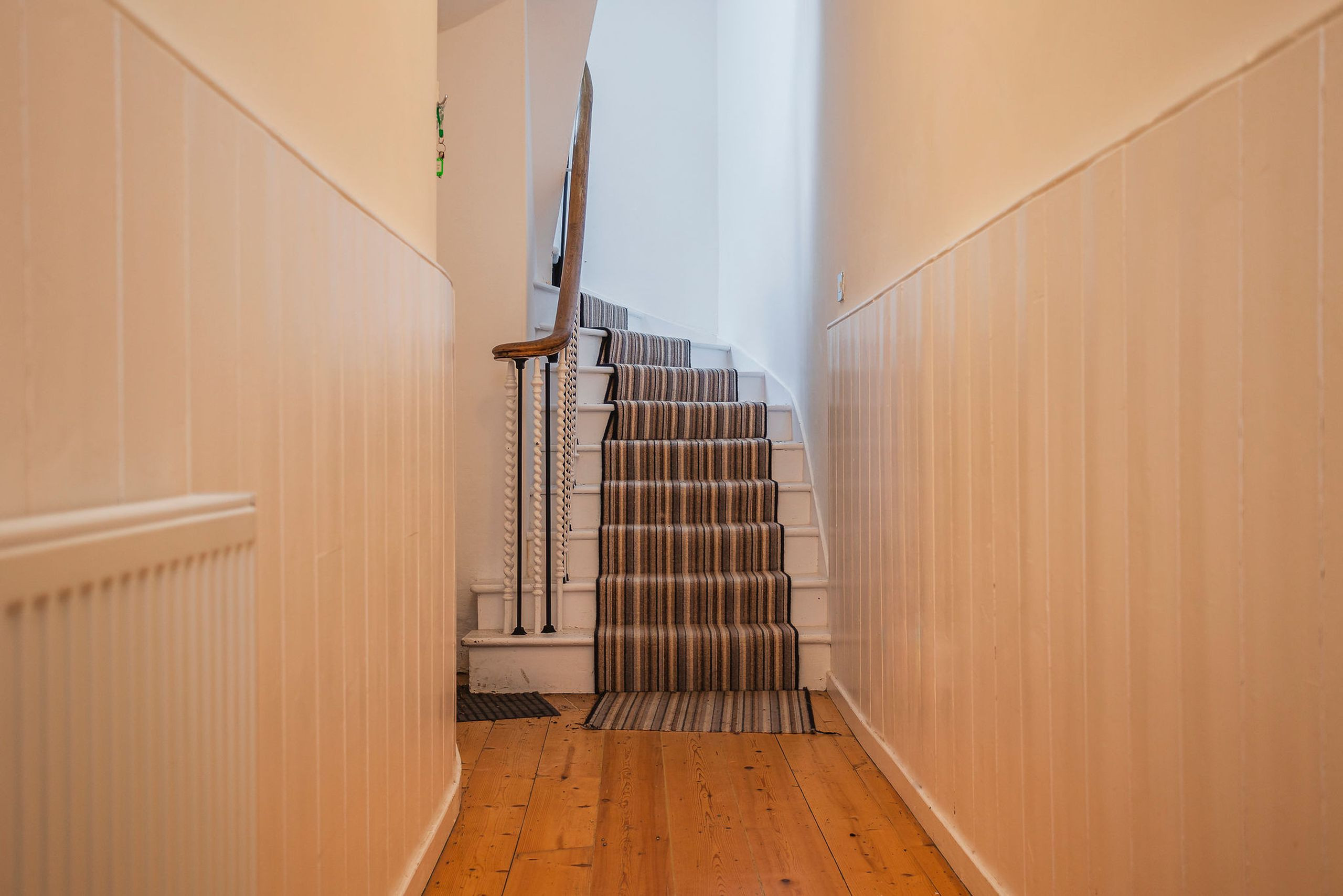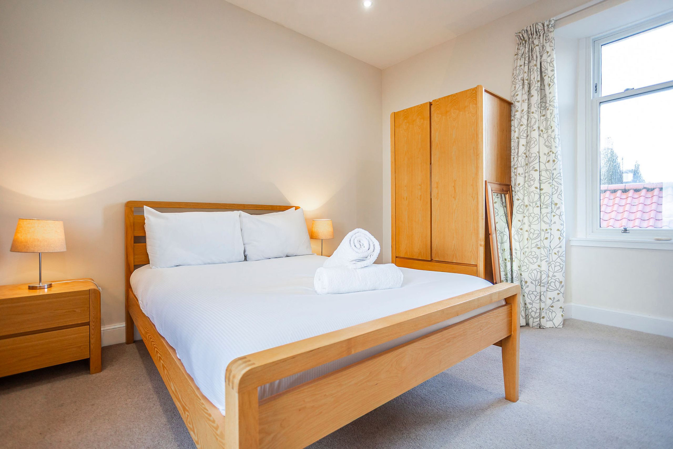 Set over two upper floors, the first level is all about relaxed, social living. A spacious reception hall leads into a fabulous lounge/dining room with twin front windows, wooden floors, a comfy sofa and accent chairs, Smart TV, and a dining table for six. There’s even a small desk for catching up on emails or planning the next day’s exploring. To the rear, the bright breakfasting kitchen pairs hardwood worktops with contemporary units and comes fully equipped with induction hob, oven, integrated fridge with icebox, dishwasher, washing machine, microwave, kettle, toaster and cafetière, plus a table for four. A stylish refitted shower room with rainfall corner shower, basin and WC completes this floor.