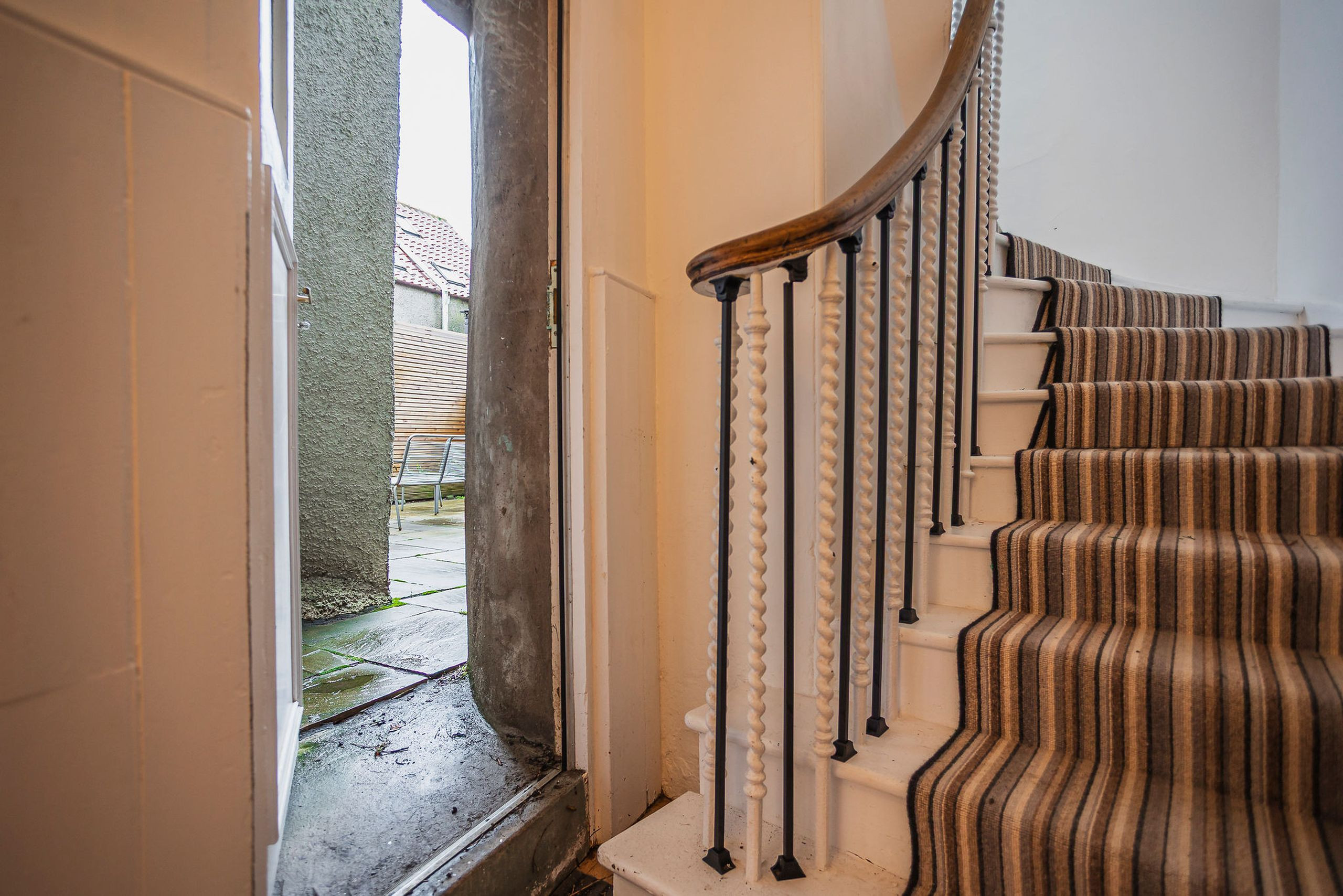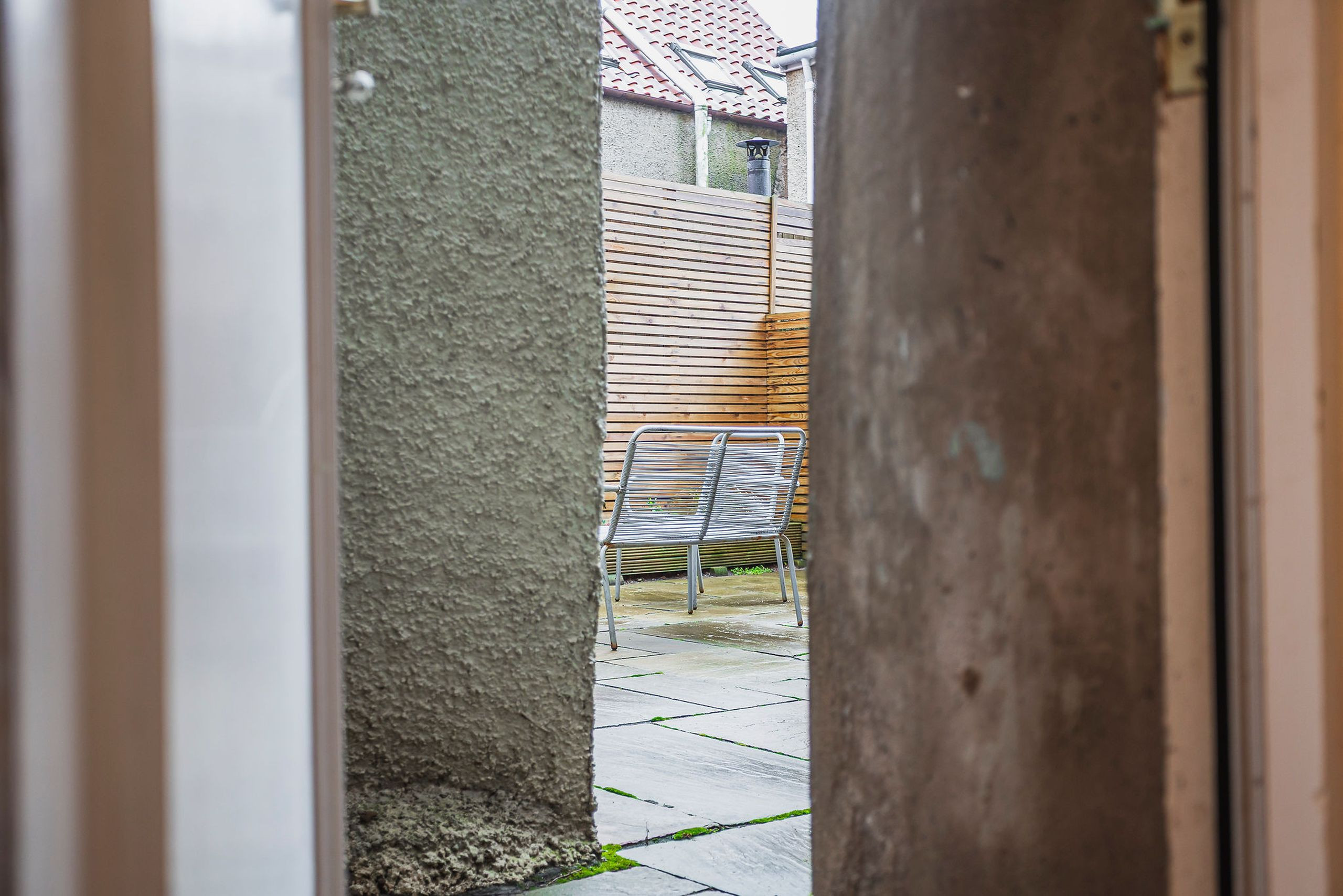 The enclosed private courtyard, accessed directly from the entrance hall, is a real sun trap with a two-seater sofa, chairs and table – a calm little outdoor nook in the middle of St Monans.