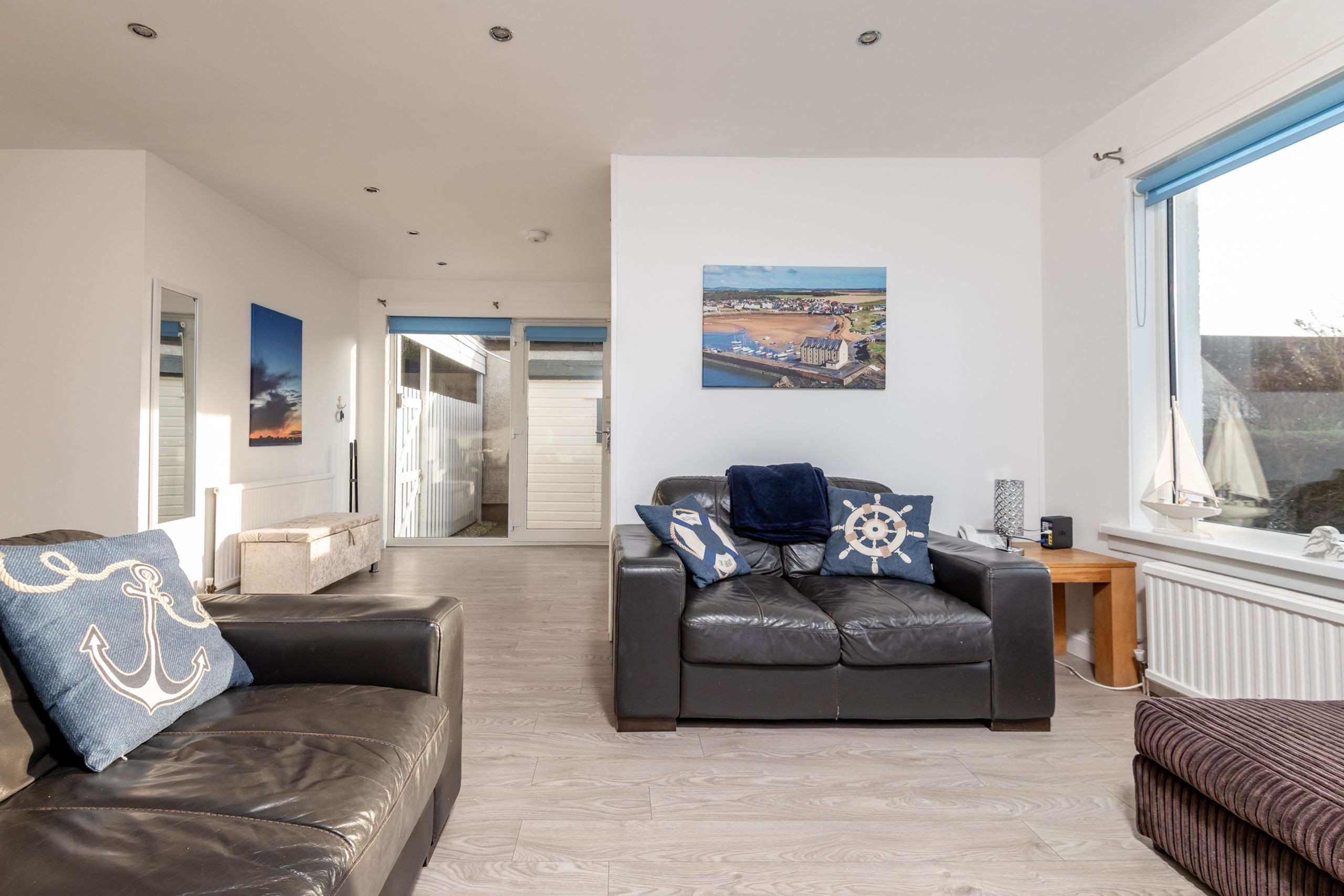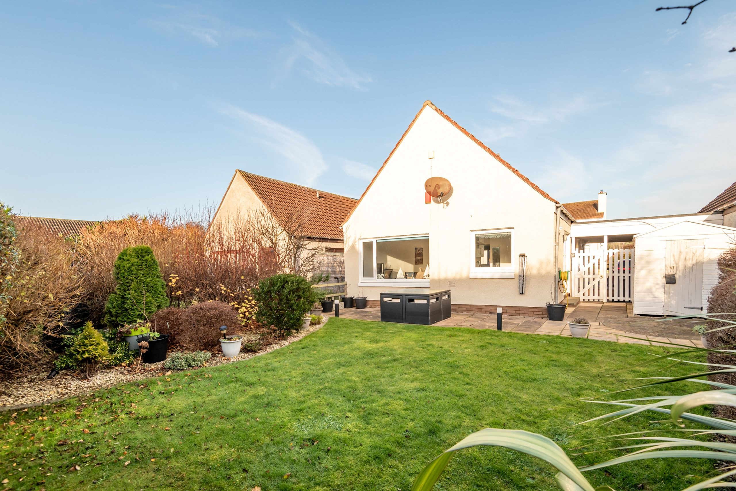 Outside, the recently remodelled, secure rear garden is a peaceful sun trap with lawn and a paved seating area, perfect for morning coffee or evening drinks. With its easy, single-level layout, private parking and location close to Elie’s beach, cafés and coastal walks, this bungalow makes a comfortable, practical base in the East Neuk – with your four-legged friend welcome too