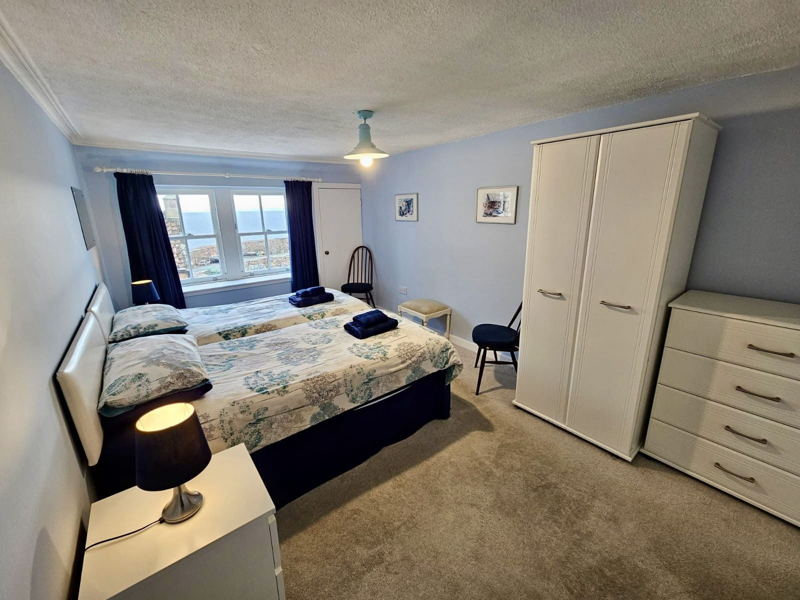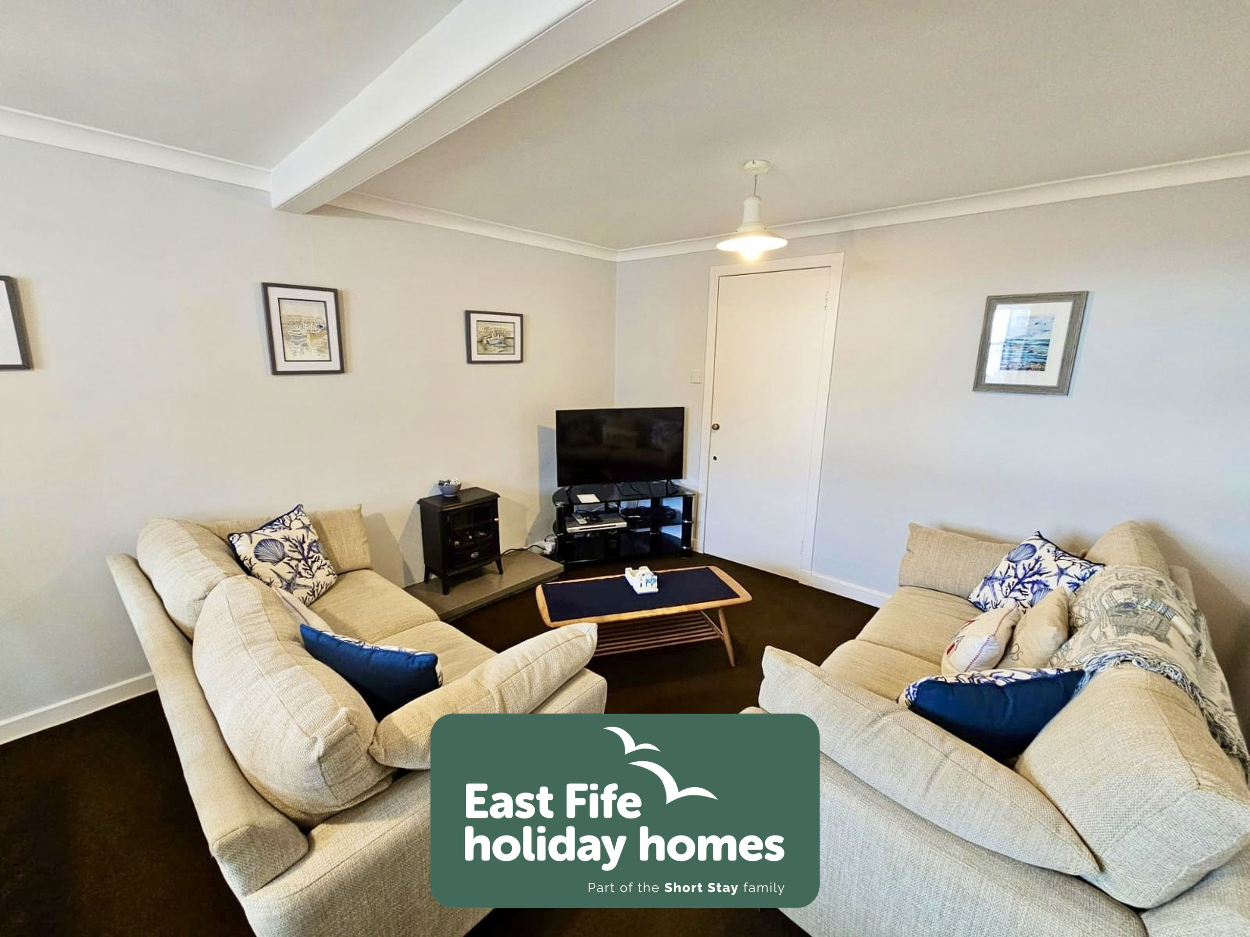 With coastal views towards the Isle of May, Seascape Apartment is located in a quiet cul-de-sac, which is less than 5 minutes walk by footpath to the centre of Crail and the harbour. Its spacious and well equipped interior occupies the first and second floors of the end terrace. With 4 bedrooms which sleep 7 comfortably, its own enclosed private garden, and residents parking, it's the ideal holiday apartment for sharing guests, golfers and families, given its close proximity to The Cow Shed, The Balcomie Links and The Craighead Links Golf Courses. Wi-fi. Gas central heating. Double glazing.