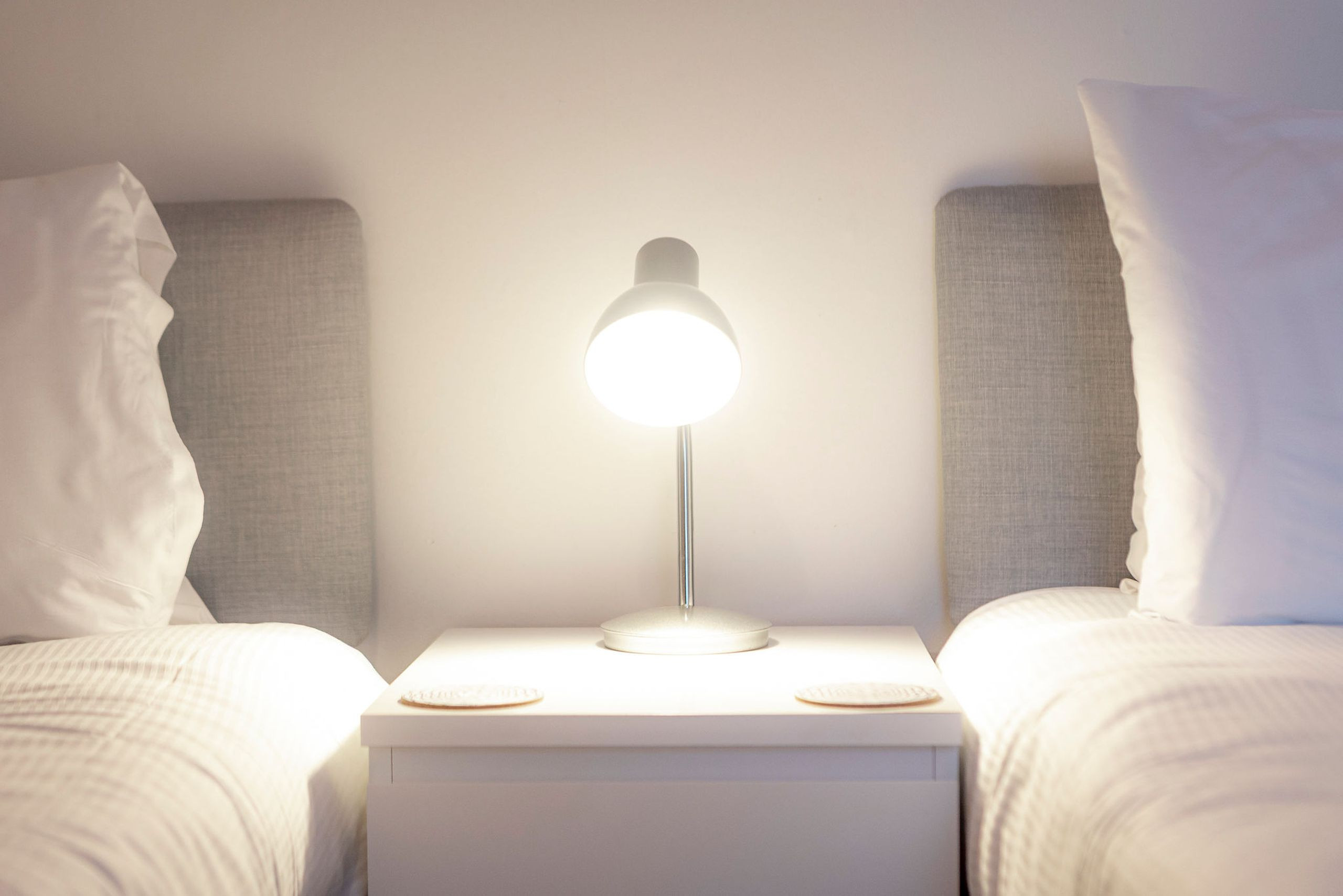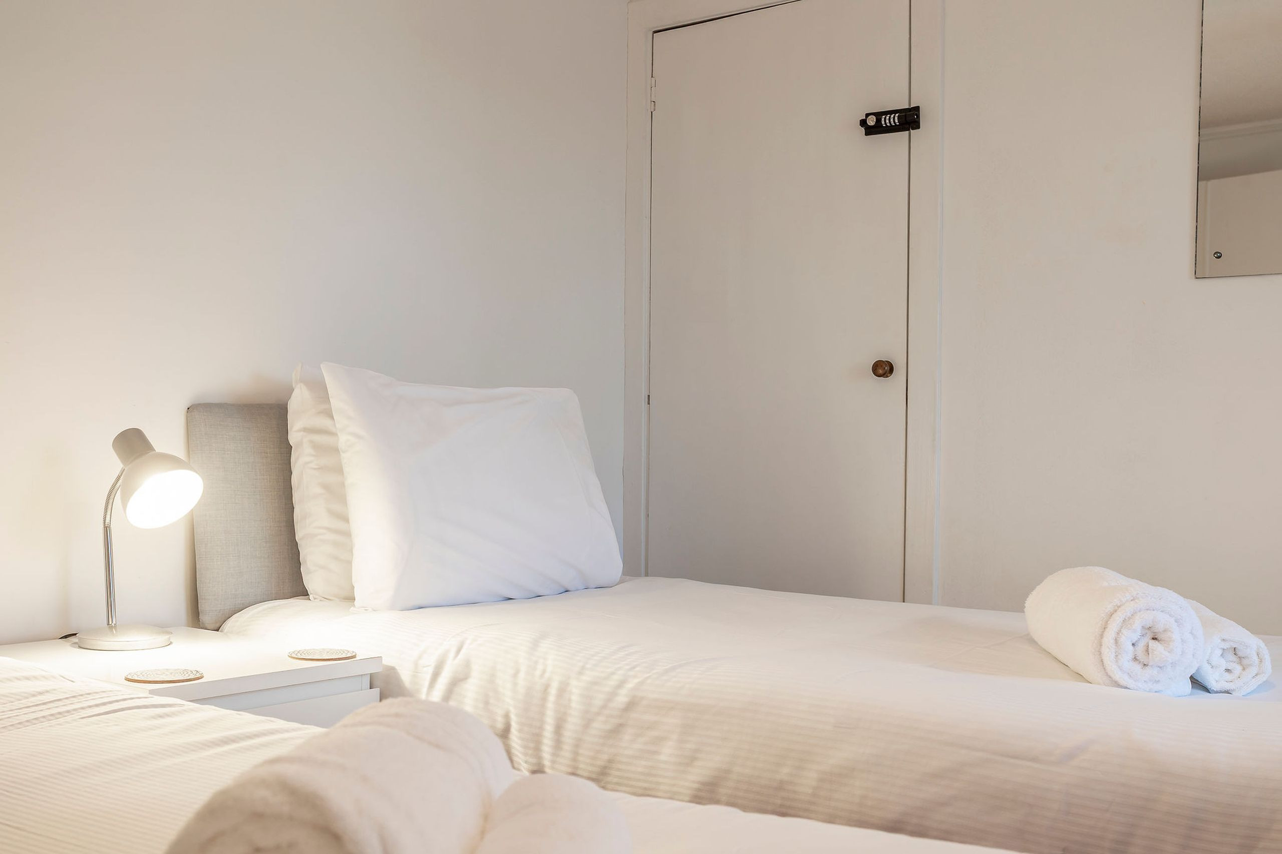 Twin bedroom (2 x single beds) with window to the front capturing harbour and sea views. Wardrobe. Chest of drawers. Lamps.