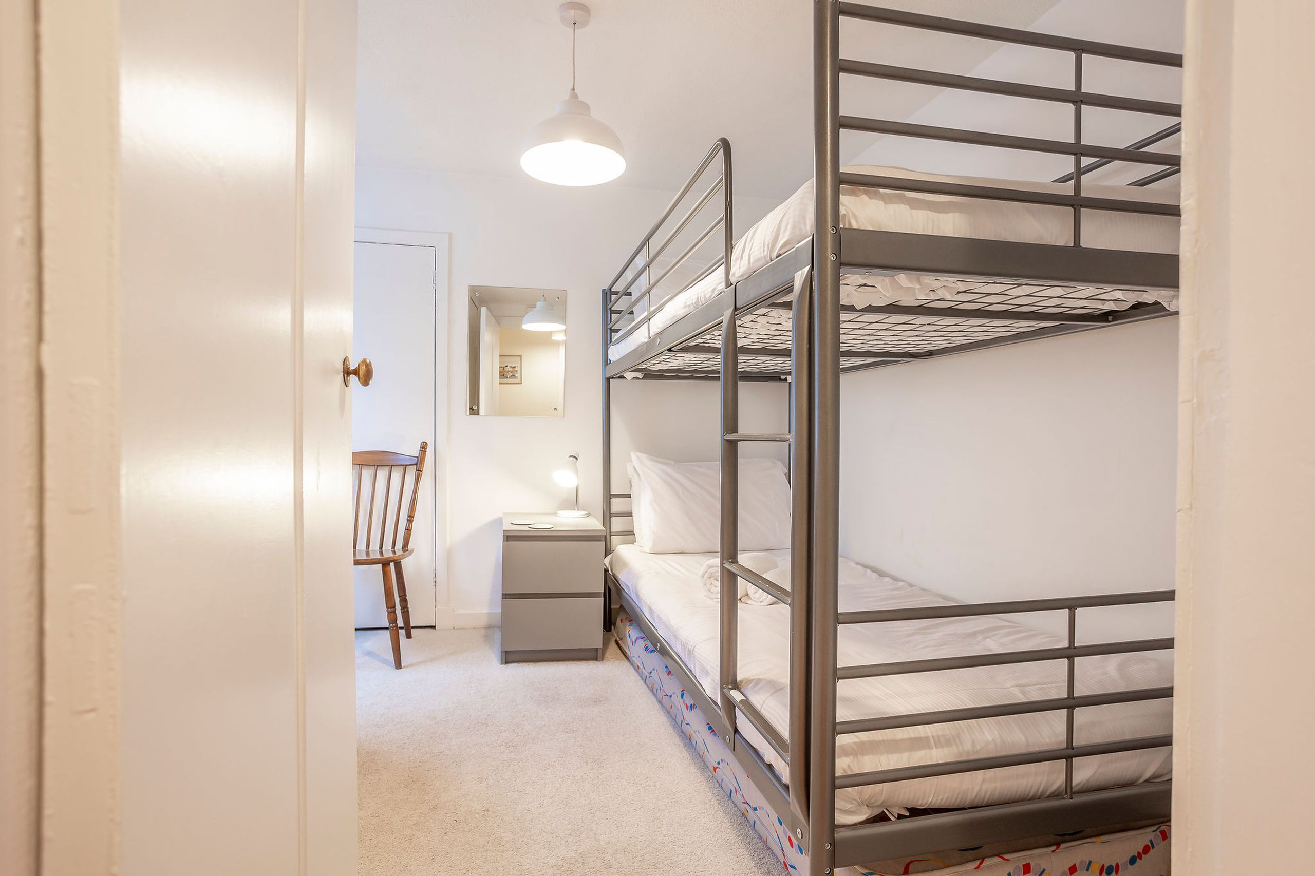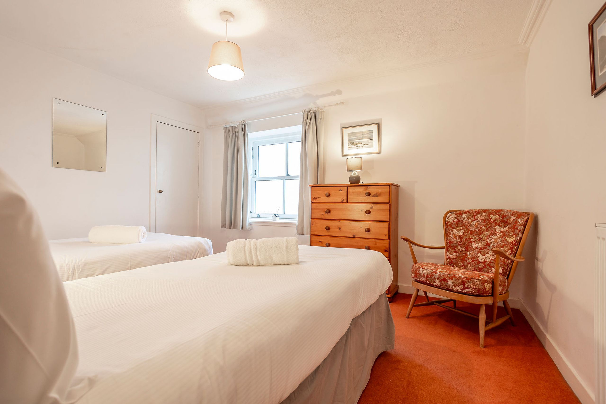 Twin bedroom (2 x single beds) with window to the front capturing harbour and sea views. Wardrobe. Chest of Drawers.