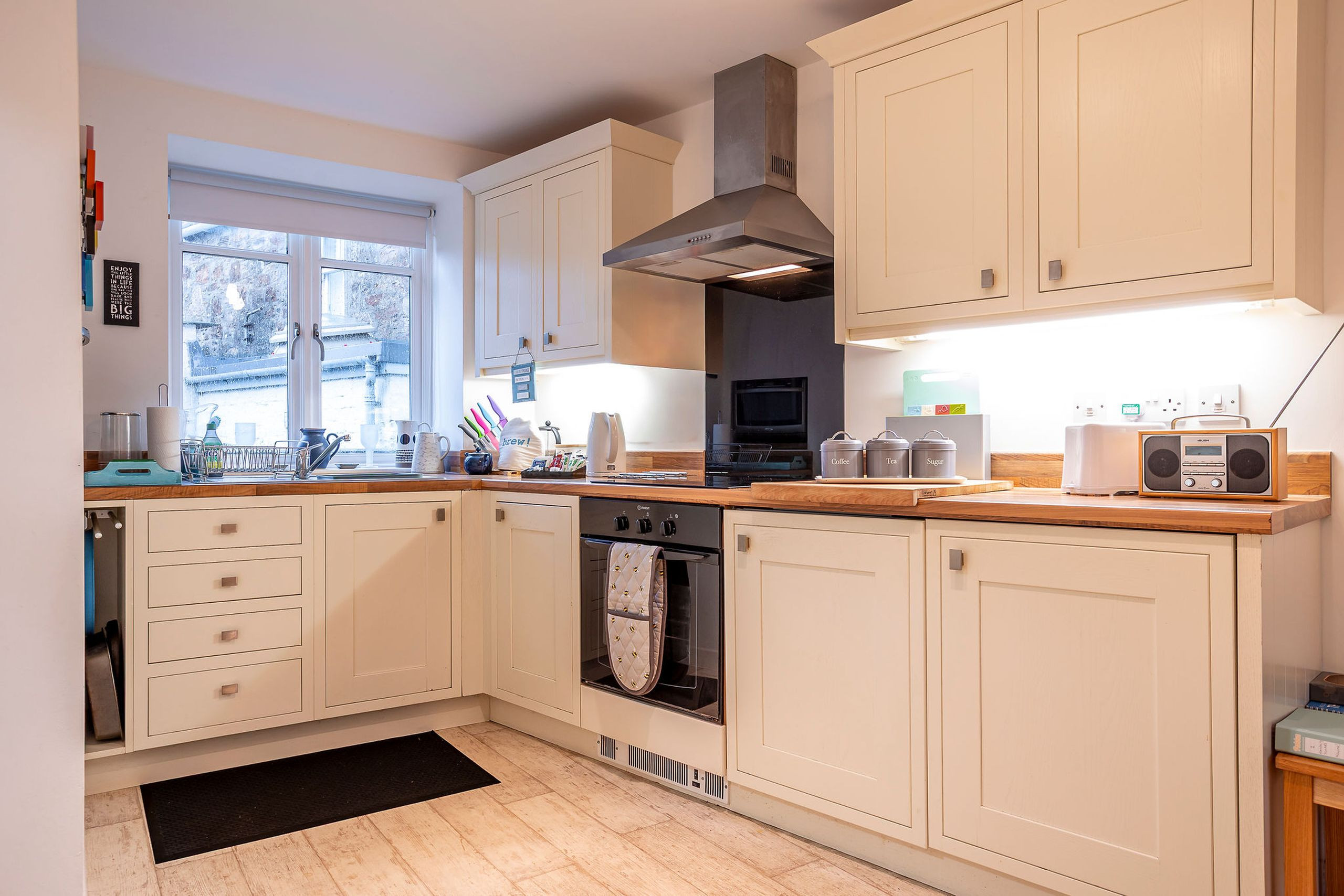 Step outside and you’re moments from Elie’s much-loved local shops, including the deli, newsagent, bakery and pharmacy, with the long sandy beach, Elie Water Sports and the famous Ship Inn just a short walk away. Unrestricted on-street parking keeps arrivals simple, while Wi-Fi and pet-friendly stays mean everyone can feel at home, four-legged family members included. -