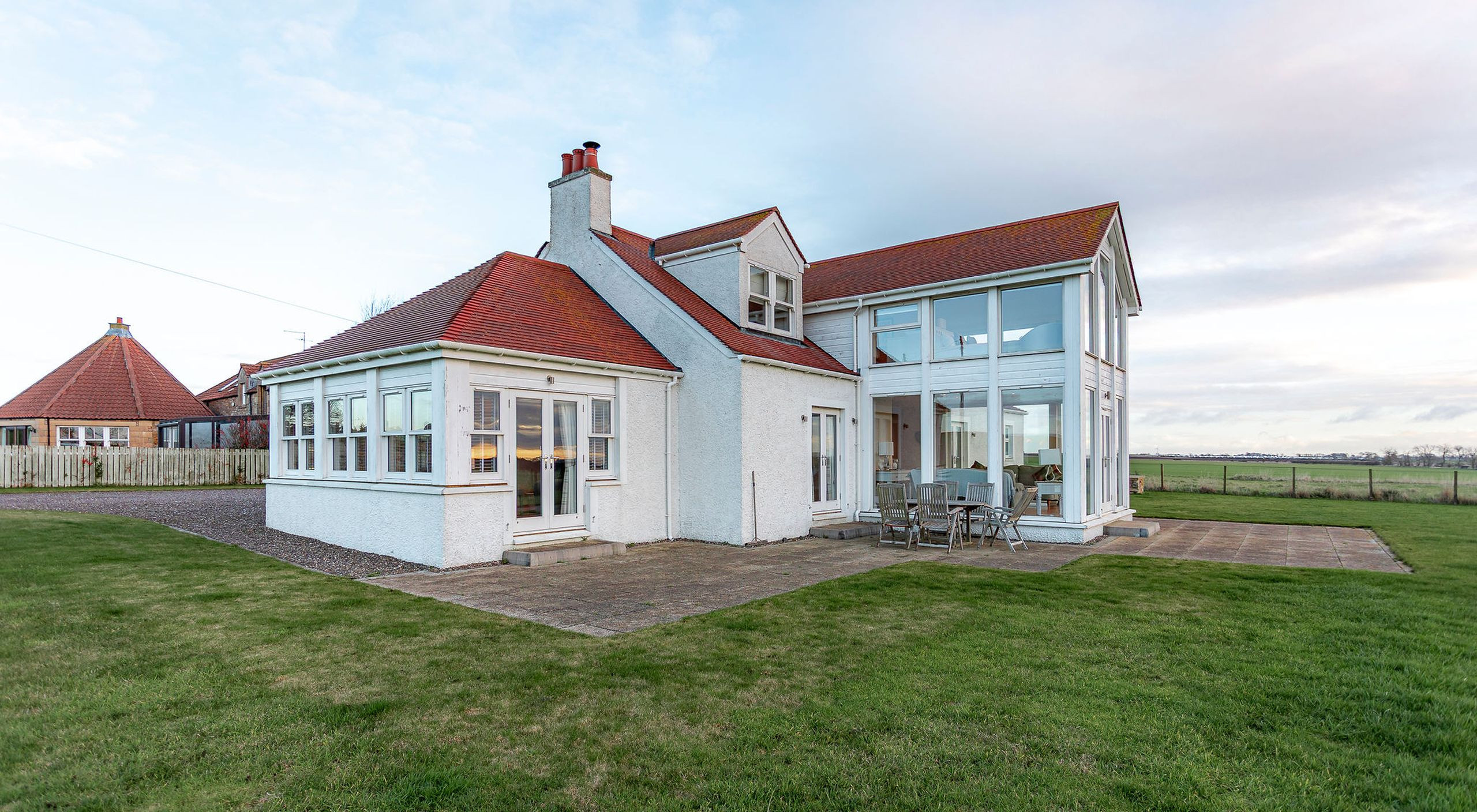 Set in a peaceful rural spot with sweeping views over open countryside towards Anstruther and the Firth of Forth, this newly renovated five-bedroom farmhouse brings bright, contemporary open-plan living to a classic East Neuk setting. Floor-to-ceiling windows showcase those stunning sea and farmland vistas, while generous social spaces and two comfy living areas make it a fantastic choice for larger groups, multi-generational families and dedicated golf parties.