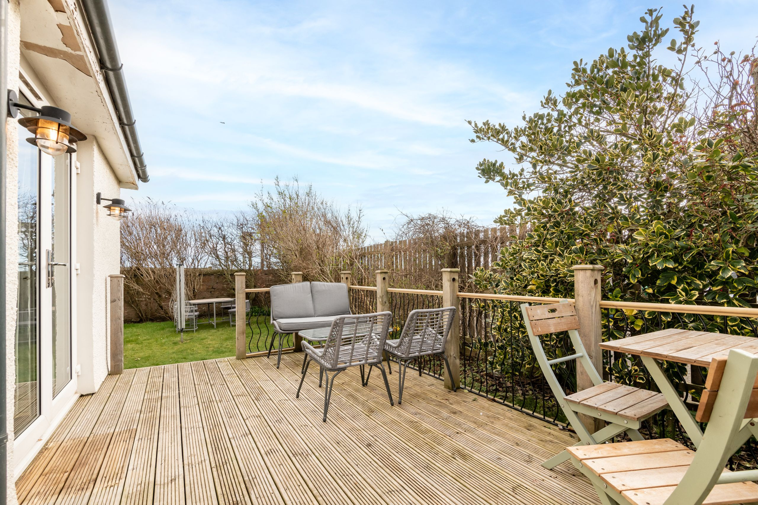 Woodside Road No 44 is a fabulous newly renovated semi detached villa in Elie, offering a calm, comfortable base that keeps you close to everything while still feeling nicely tucked away. Sleeping up to four guests across two bedrooms with two bathrooms, it has been tastefully decorated and furnished throughout, with bright, spacious living accommodation that works beautifully for couples, small families or friends sharing. You’ll find a welcoming lounge and dining room for relaxed evenings in, a luxury fitted kitchen for easy self catering, and a newly installed cloakroom WC that adds extra day to day convenience. The sleeping arrangements are ideal for flexible stays, with one double and one twin, plus an additional workspace room that’s perfect if you need a quiet spot for emails, planning day trips, or simply getting away with a book. Outside, level gardens to the front and rear give you simple private space for morning coffee or winding down after a beach day, and a lockable shed is on hand for storing bikes and coastal kit. Parking is easy too, with private off street parking for one car, and Wi fi is included. Location wise, you’re perfectly placed for village life, just a short stroll from Elie High Street and its much loved local shops including Barnett’s Bakers, Elie Newsagents, Elie Deli and Davidson’s Pharmacy, and only around five minutes’ walk to Elie’s long sandy beach for sea swims, coastal walks and sunset strolls. Please note that no pets are allowed at this property.