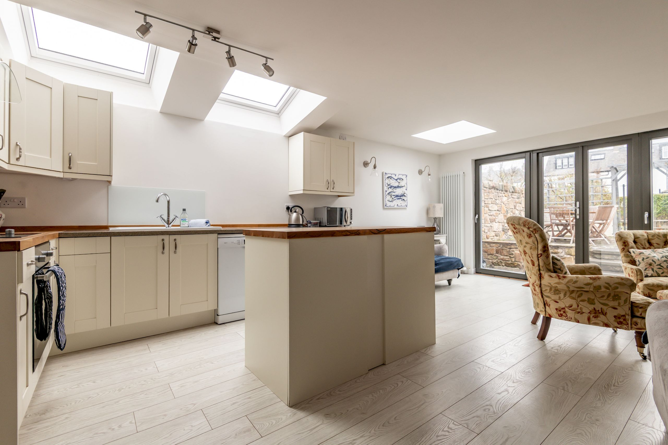 Devon Cottage in Elie is a beautifully renovated traditional terraced cottage that combines coastal charm with bright, contemporary comfort. Sleeping up to eight guests across three bedrooms with two bathrooms, it’s an ideal choice for families and friends looking for an easy, beach focused escape in the East Neuk. Finished to a high standard throughout, the cottage feels fresh and welcoming, with sociable spaces to come together after a day outdoors and plenty of room for everyone to relax. Step out into the fully enclosed rear garden, a real sun trap that catches the light throughout the day and offers a private spot for morning coffees, lazy lunches and unwinding in the evening, with peace of mind for children and dogs. Location wise, it’s hard to beat: the cottage is literally seconds from Elie’s long sandy beach for sea swims, sandcastles and sunset strolls, and just a minute from the golf course for early tee times or a quick wander over the dunes. With Wi Fi included and dog friendly stays available (supplement applies), Devon Cottage makes a brilliant base for making the most of Elie, the coastal path and the picture postcard villages nearby.