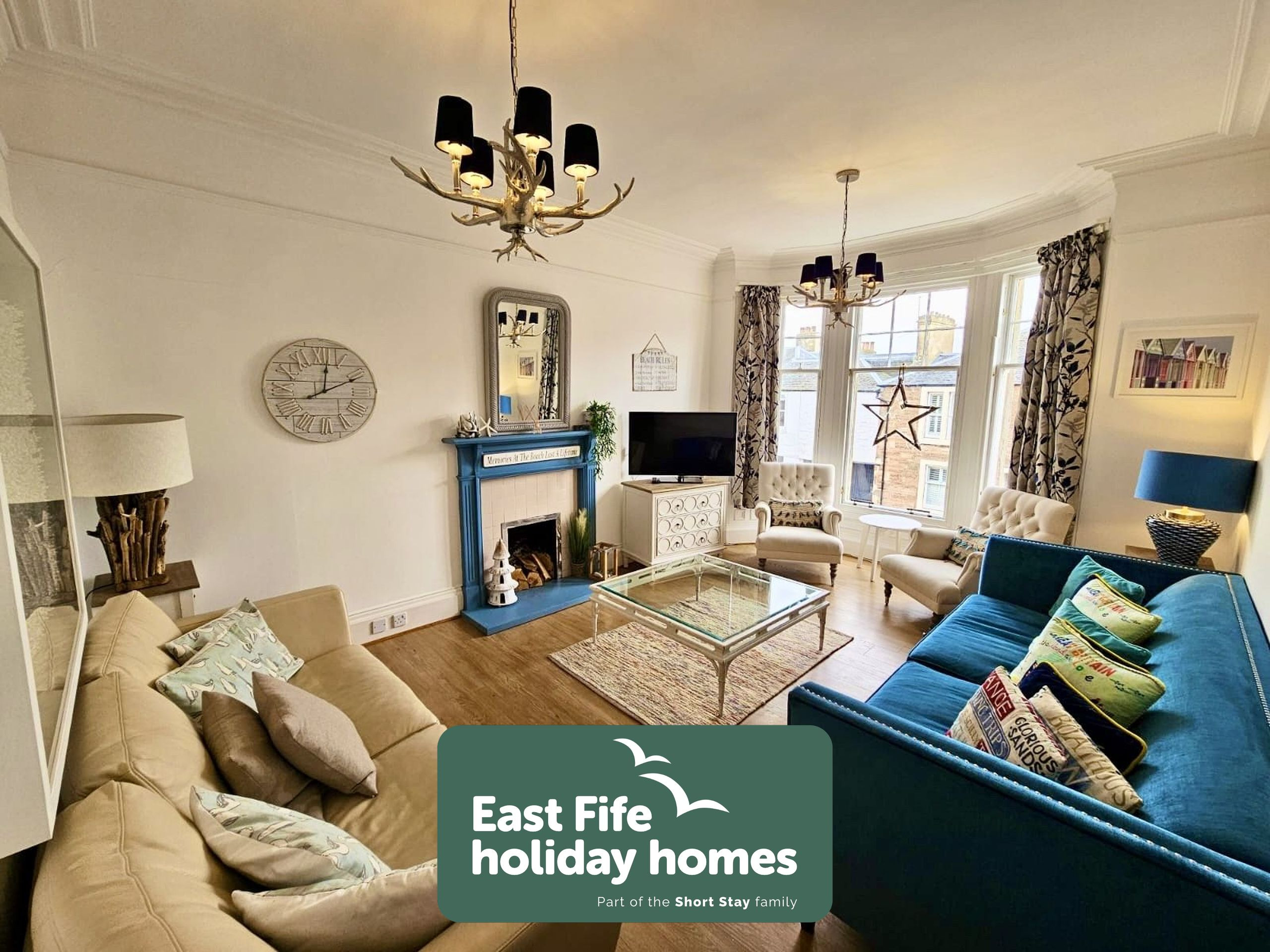 Individually designed and built around 20 years ago, Homeview is a standout detached villa in Elie, set within private gated gardens with open views to the sea at the front and the 18th hole of Elie Golf Course at the rear. It’s a dream base for families, friends and dedicated golfers: you’ve got a large driveway for up to four cars, a purpose-built staircase and gate giving direct access onto the course and clubhouse, and bright, generous living spaces inside for everyone to come together. With underfloor heating, Wi-Fi and space for up to two dogs (supplement applies), it’s made for easy, relaxed breaks on the Fife coast.