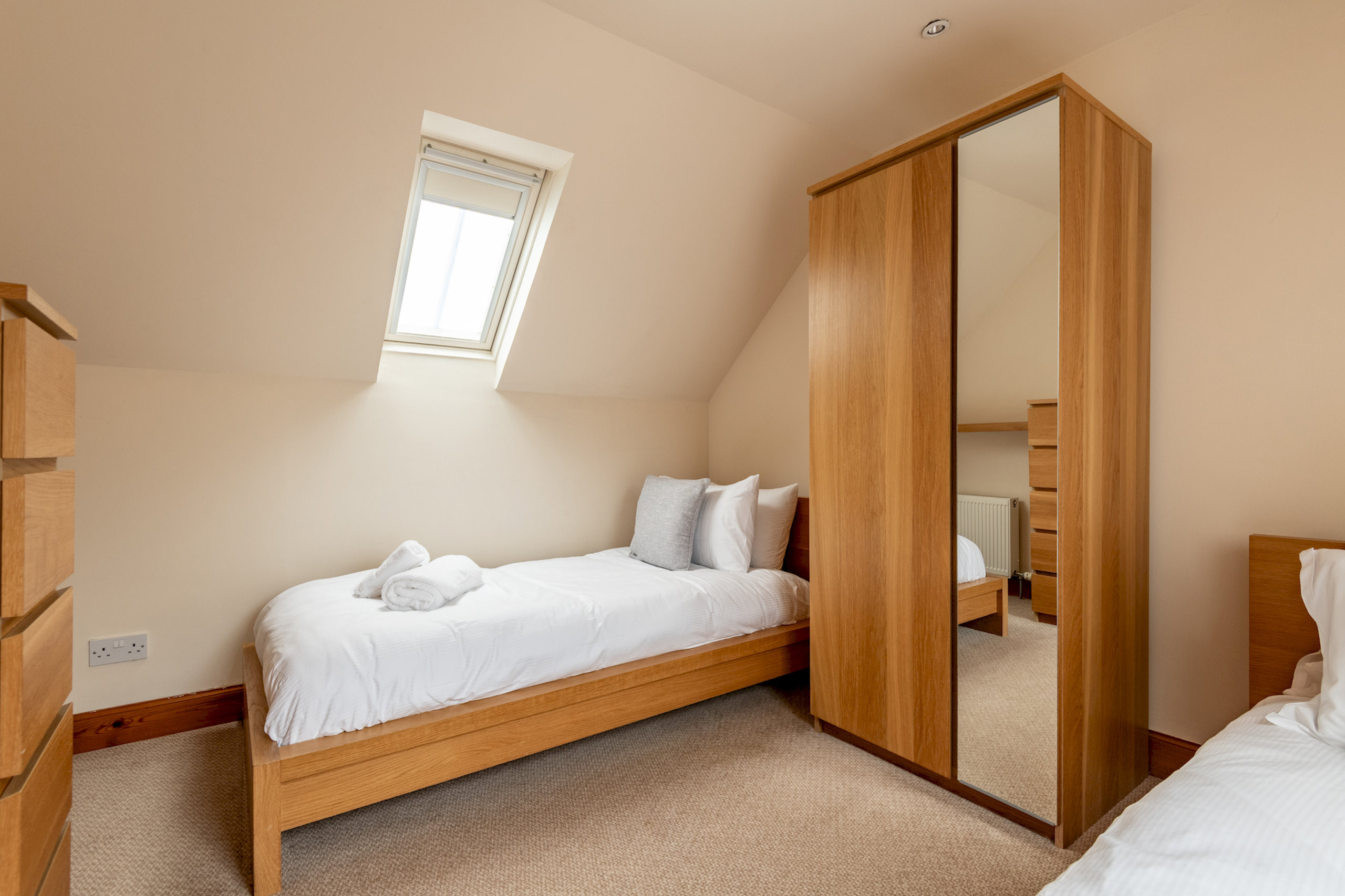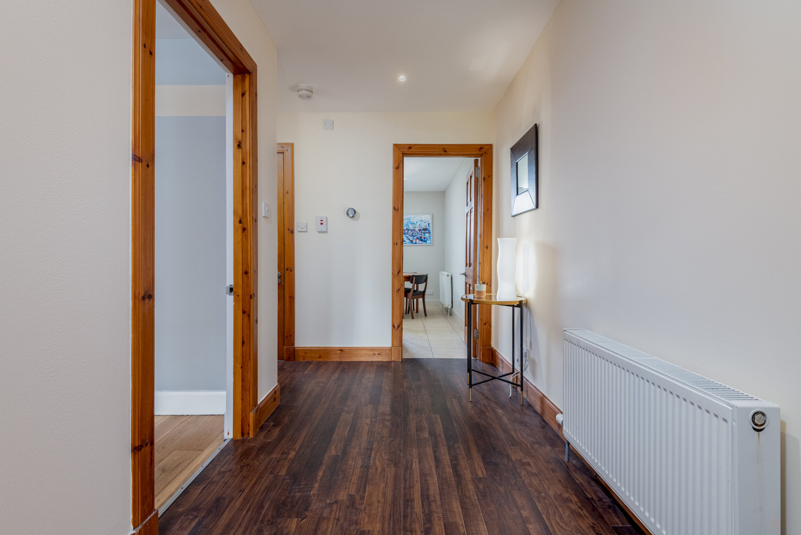 Sleeping arrangements are wonderfully flexible: two stylish bedrooms can be prepared as 2 doubles, 1 king and 1 double, or 1 king and 2 singles – perfect for couples, friends or families. Bedroom 1 offers a king-size bed and a hair dryer for added convenience, while Bedroom 2 can be set up as a twin or a double to suit your needs. The modern bathroom features a bath, separate free-standing shower, WC and wash hand basin.