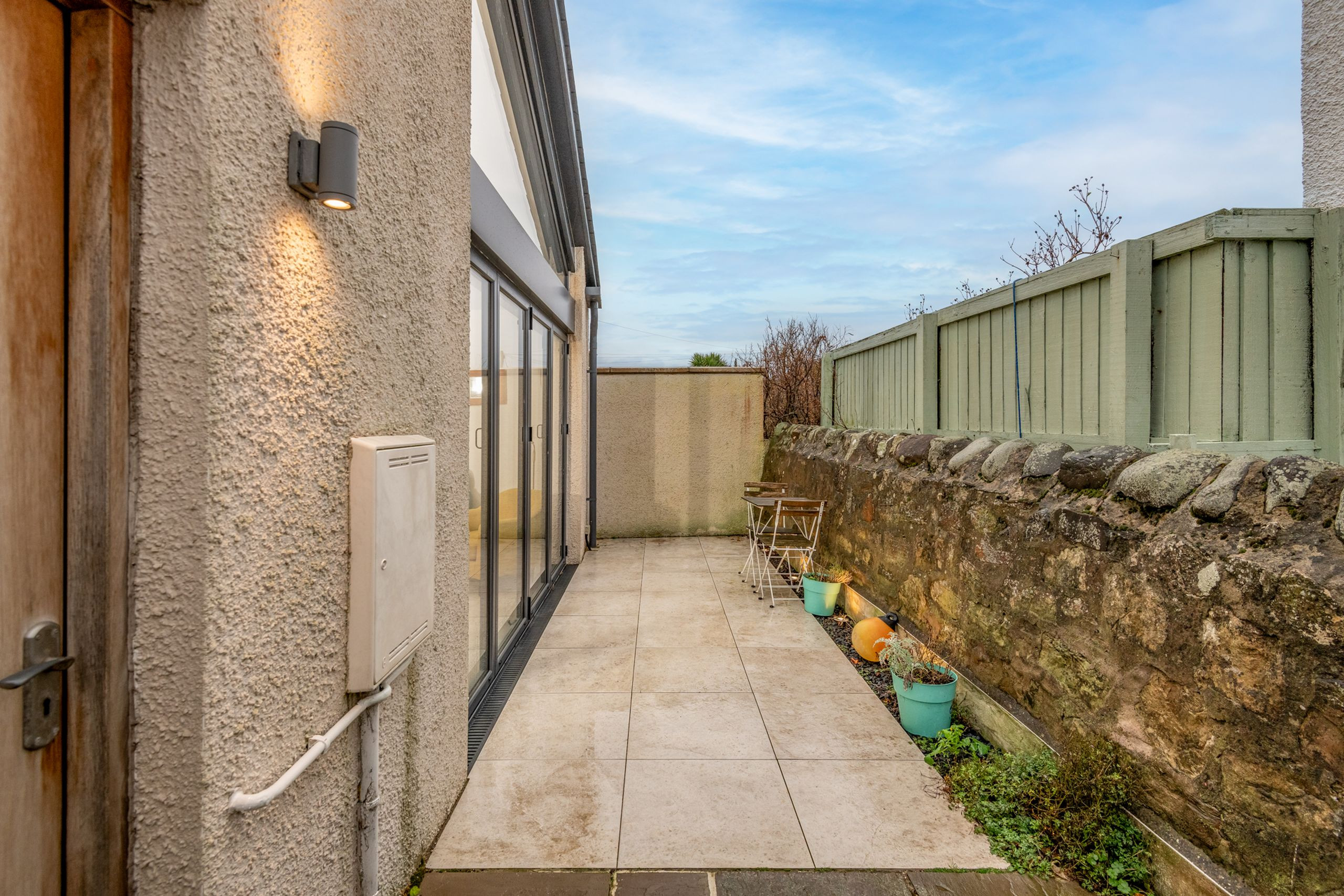 Outside, the paved patio sits directly off the living area, with a table and chairs for lingering over morning coffee or a quiet evening drink after a day on the beach or the course. With Elie’s shops, cafés, coastal path and links golf all within easy reach, Tylösand makes a polished, easy-going base for exploring this much-loved corner of the East Neuk.