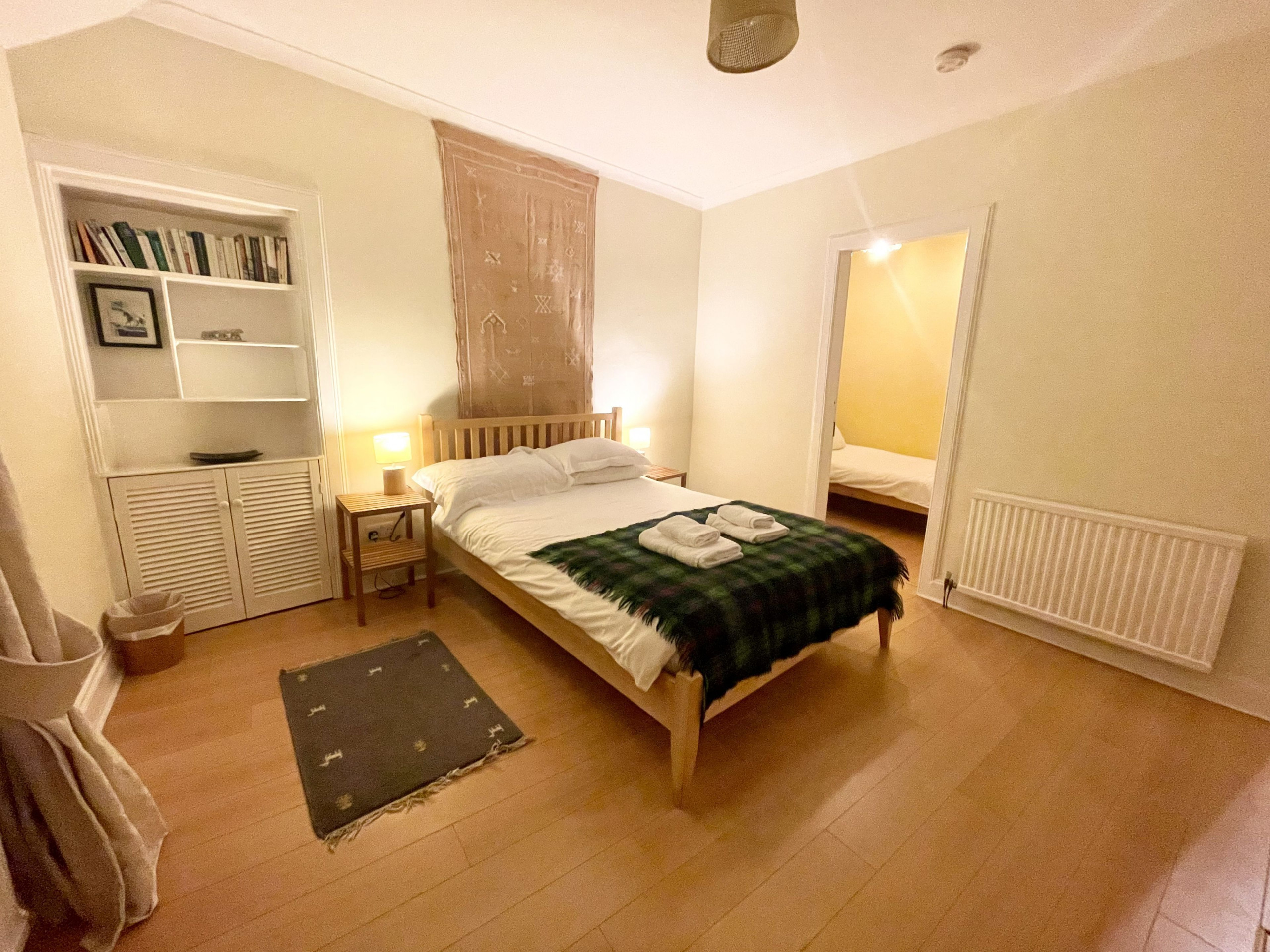 Characterful and spacious house in enviable position above Lower Largo's long sandy beach with direct access to the sand (or sea depending on the tide) via a gate and steps leading down from the South facing patio. Wireless Internet.The house has five bedrooms (one of which is a small single leading off a double which makes an ideal family suite), two en-suite bathrooms, two en-suites on the first floor and a family bathroom and bedroom on the ground floor for those with mobility problems. Pubs and shop within walking distance.