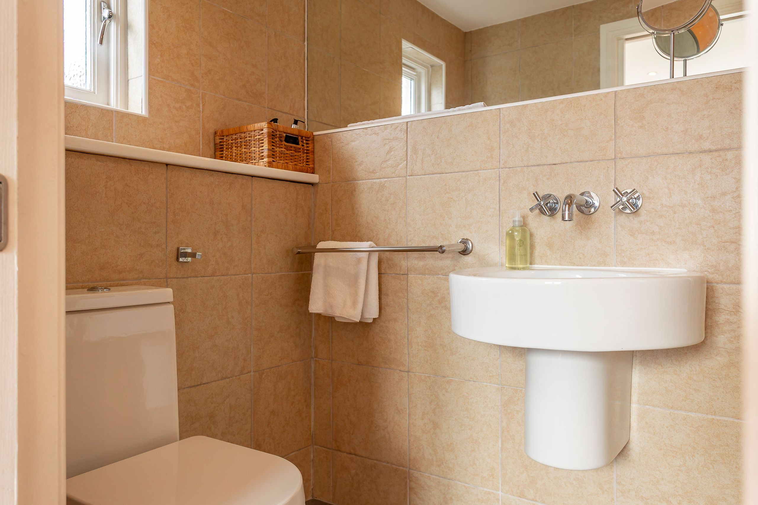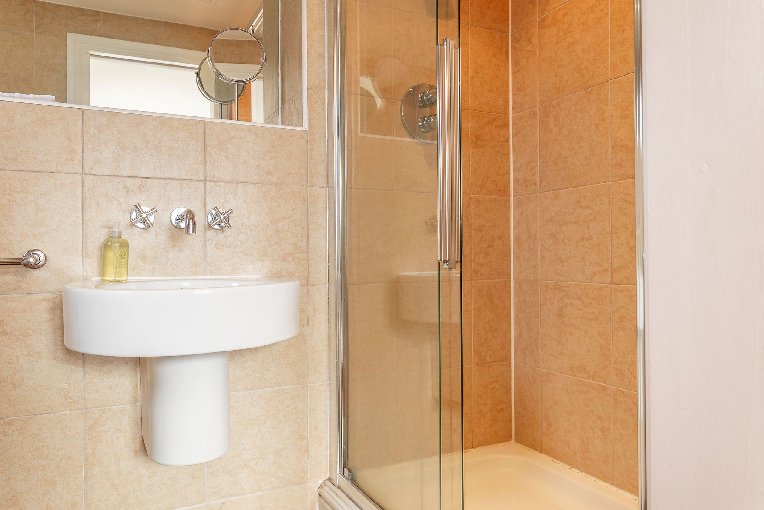 Also on the first floor the master bedroom enjoys the same sea views and opens directly onto the side decking through folding doors, with its own contemporary en suite for extra convenience. A comfortable twin bedroom at the rear is perfect for children, with plenty of storage and space for play. The fully tiled family bathroom has a bath and overhead shower for relaxed mornings.