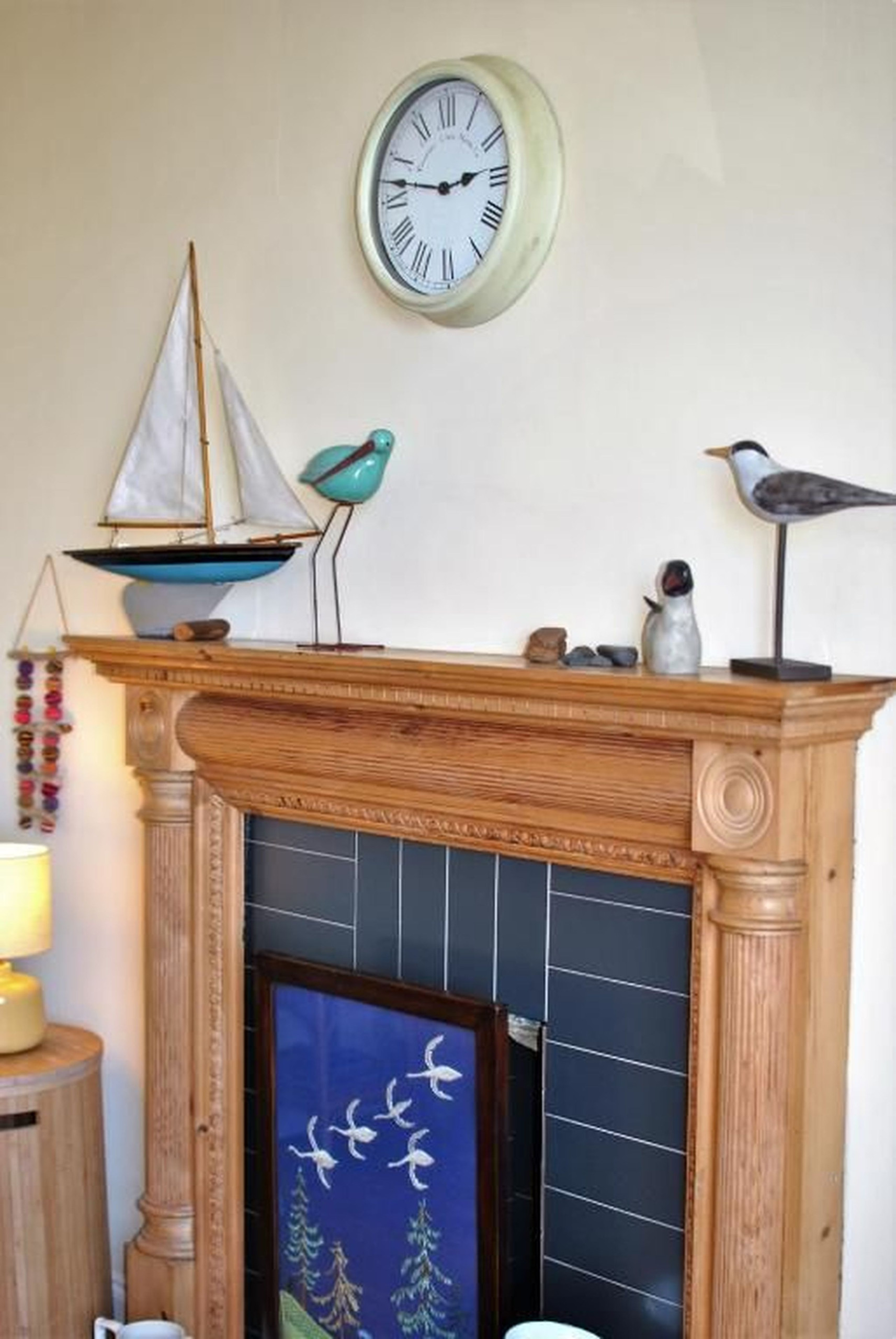 The first floor is very much the heart of the home. A modern, fully fitted dining kitchen spans the width of the house, with double windows framing fantastic sea views across the estuary and flooding the room with natural light. There’s plenty of space for relaxed cooking and dining, with floor and wall units, co-ordinating worktops, integrated washing machine, full-size dishwasher, fridge and separate freezer, plus electric oven, gas hob, microwave, kettle and toaster. A matching dining table with six chairs, stripped wooden floor, carved fireplace, window seat and easy chairs make this a sociable, welcoming space to gather. Also on this level is a larger-than-average family bathroom, complete with a freestanding roll-top bath, 1.5-size shower enclosure, vanity sink, WC and traditional fire surround, as well as a separate cloakroom with glass basin, WC and heated towel rail.